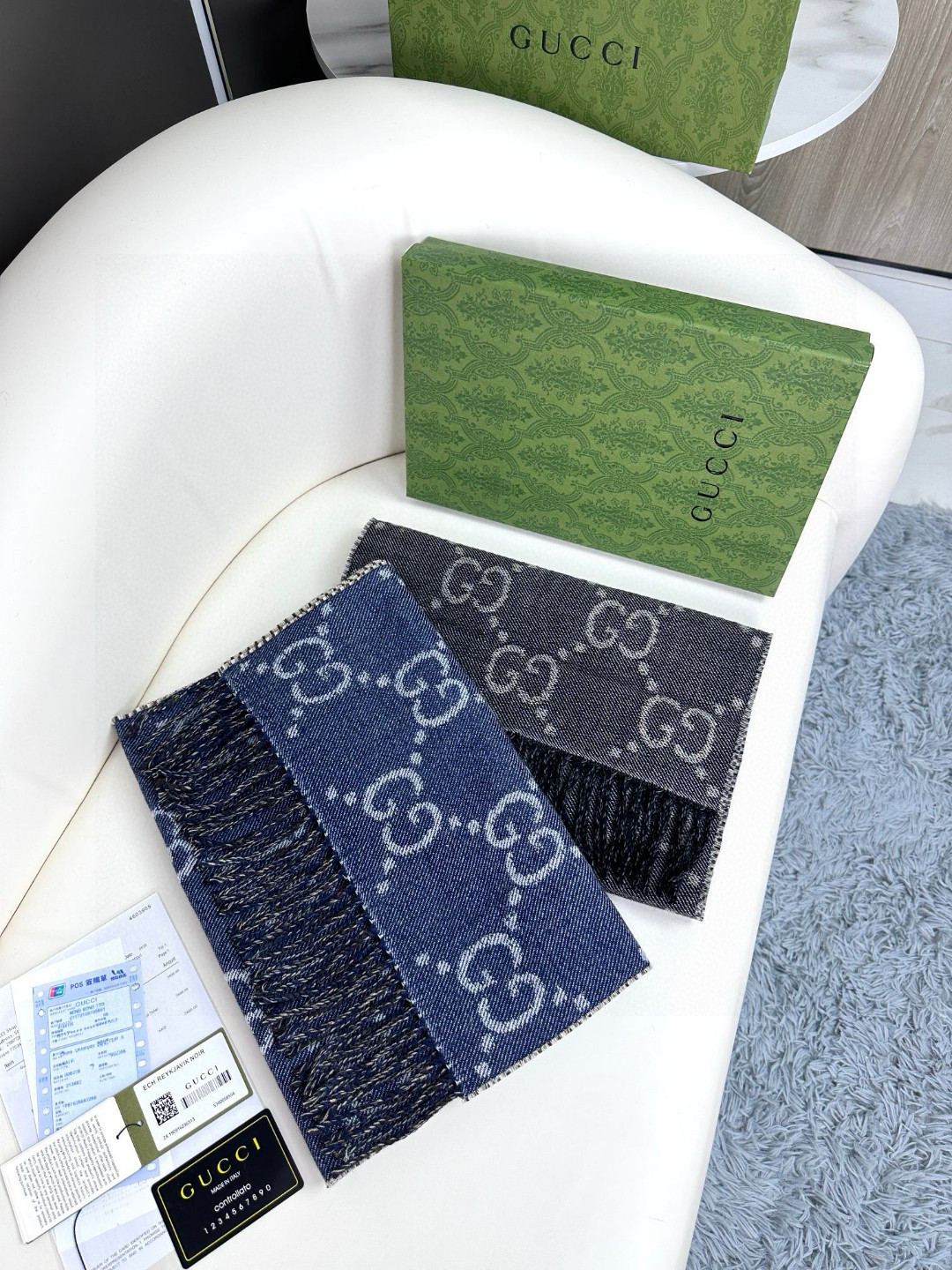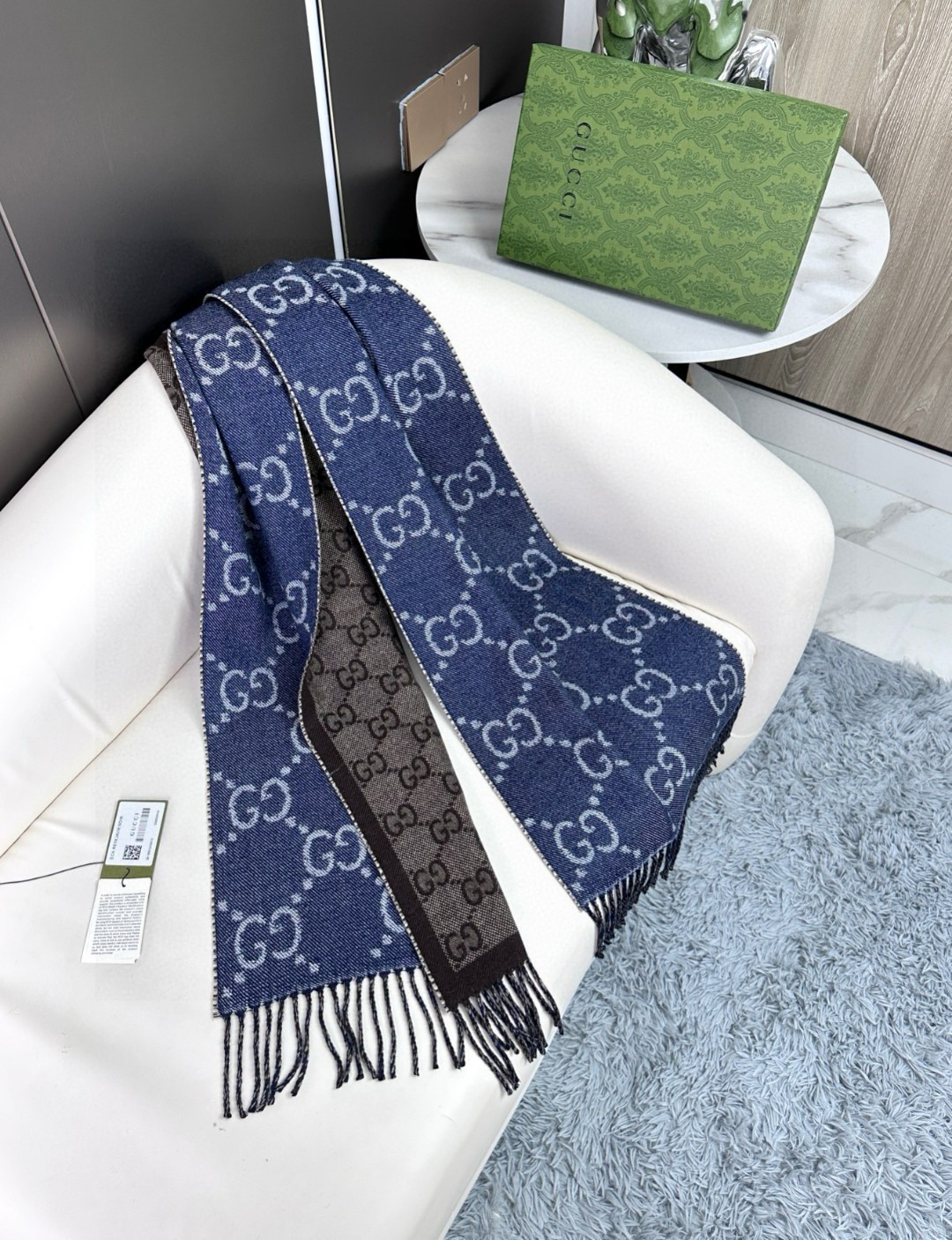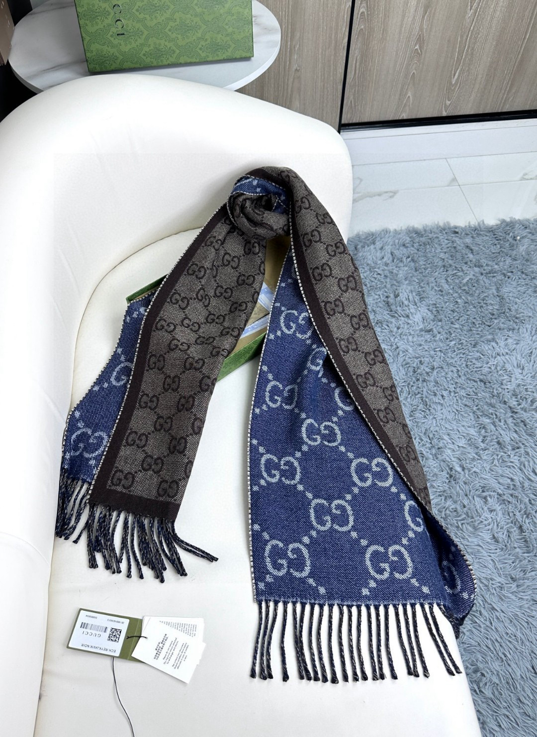 Elevate your wardrobe with this exquisite Gucci scarf. Its timeless design and exceptional quality make it a must-have accessory for any fashion enthusiast. Whether you're dressing up for a special occasion or adding a touch of luxury to your everyday look, this scarf is sure to impress.