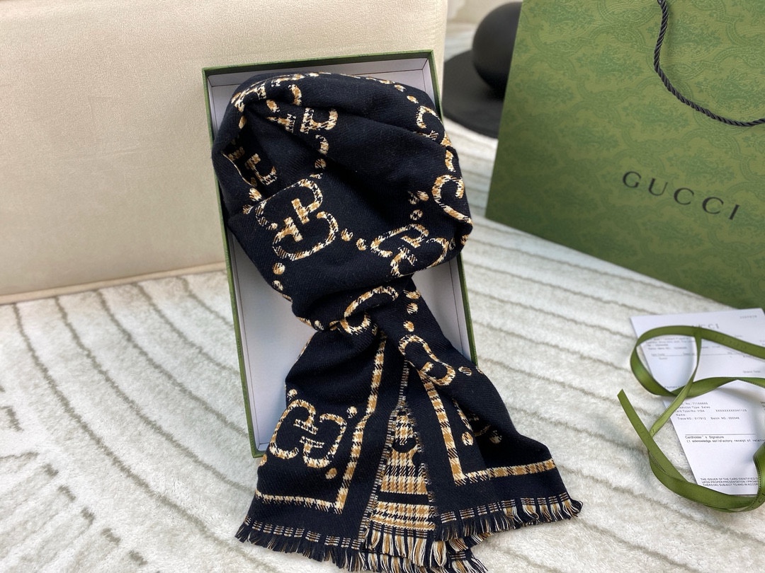 Experience the perfect blend of luxury, comfort, and style with this timeless Gucci scarf. Whether you're dressing up for a special occasion or adding a touch of elegance to your everyday look, this scarf is sure to impress.