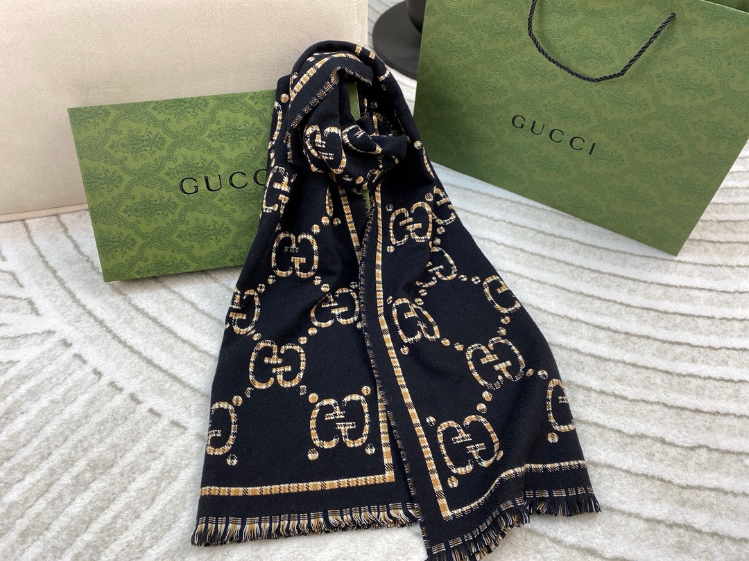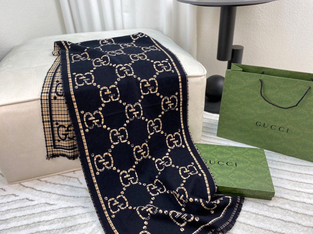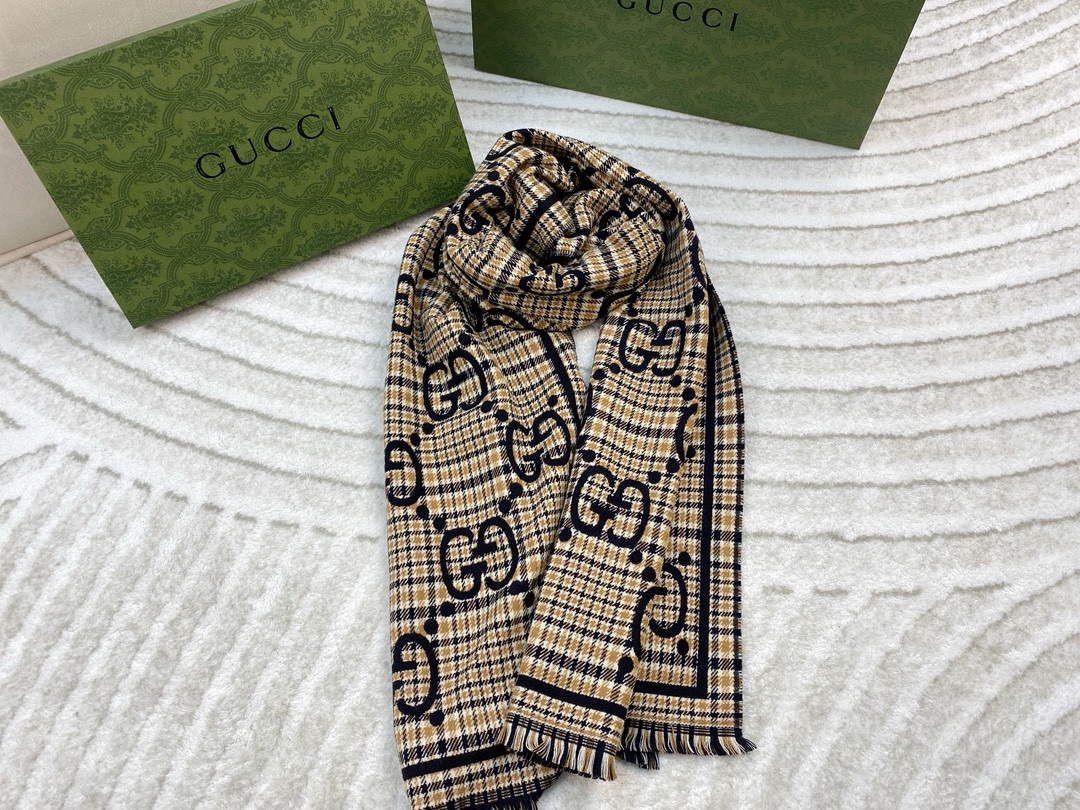 Gucci Women's Elegant Large G Design Wool Scarf - 180*65cm - Soft & Comfortable
