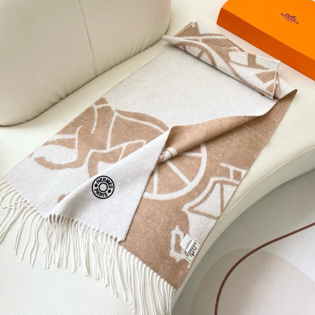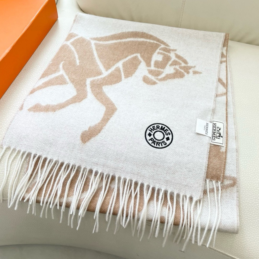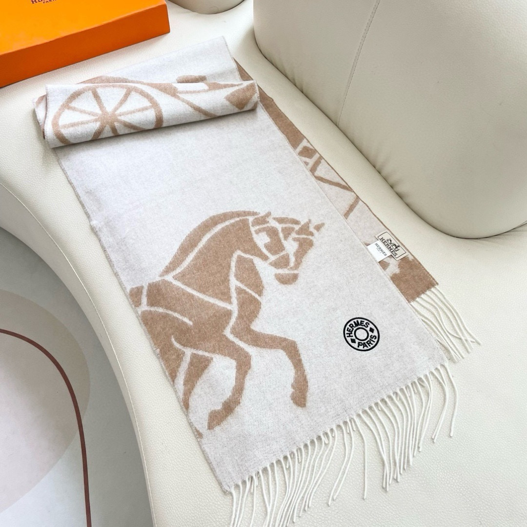 Experience luxury with this Hermes cashmere scarf. Classic design, soft texture, and exquisite logo. Perfect for any occasion, offering style and warmth.