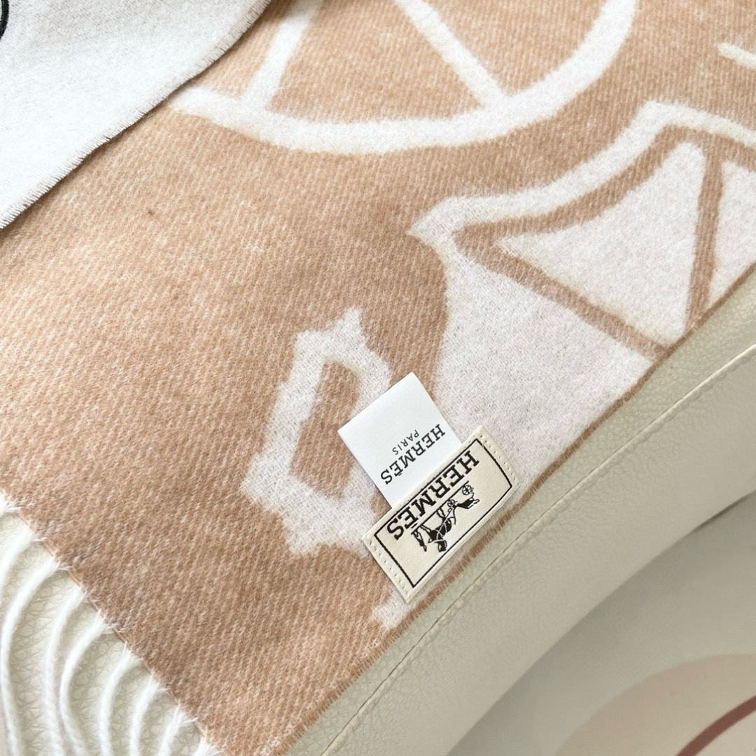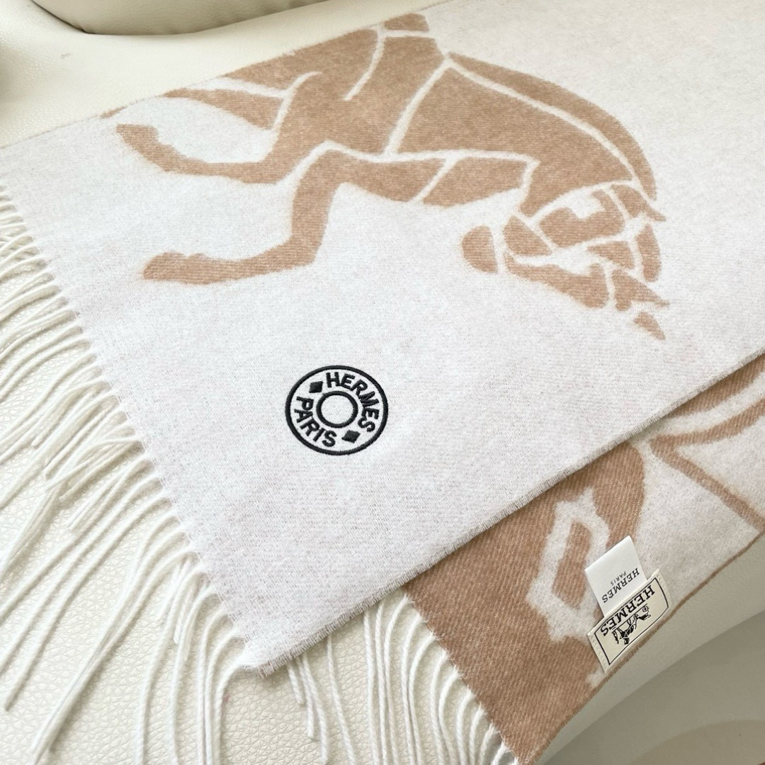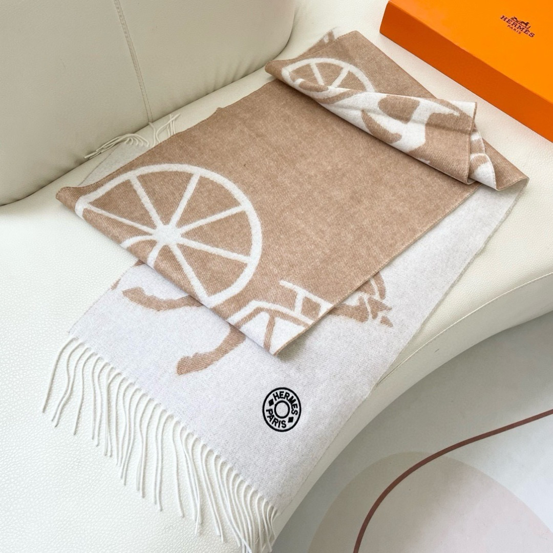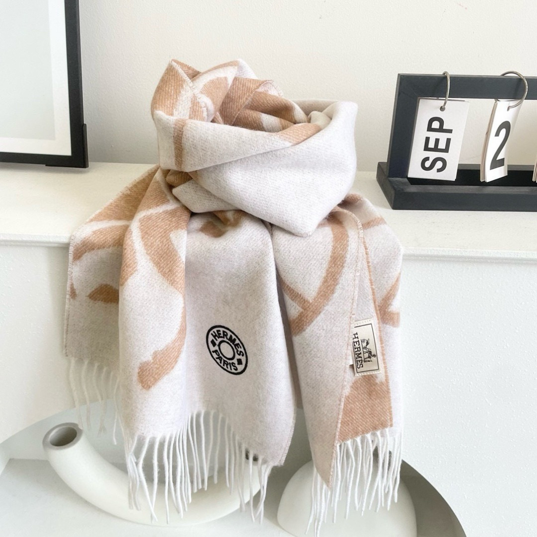 Experience luxury with this Hermes cashmere scarf. Classic design, soft texture, and exquisite logo. Perfect for any occasion, offering style and warmth.
