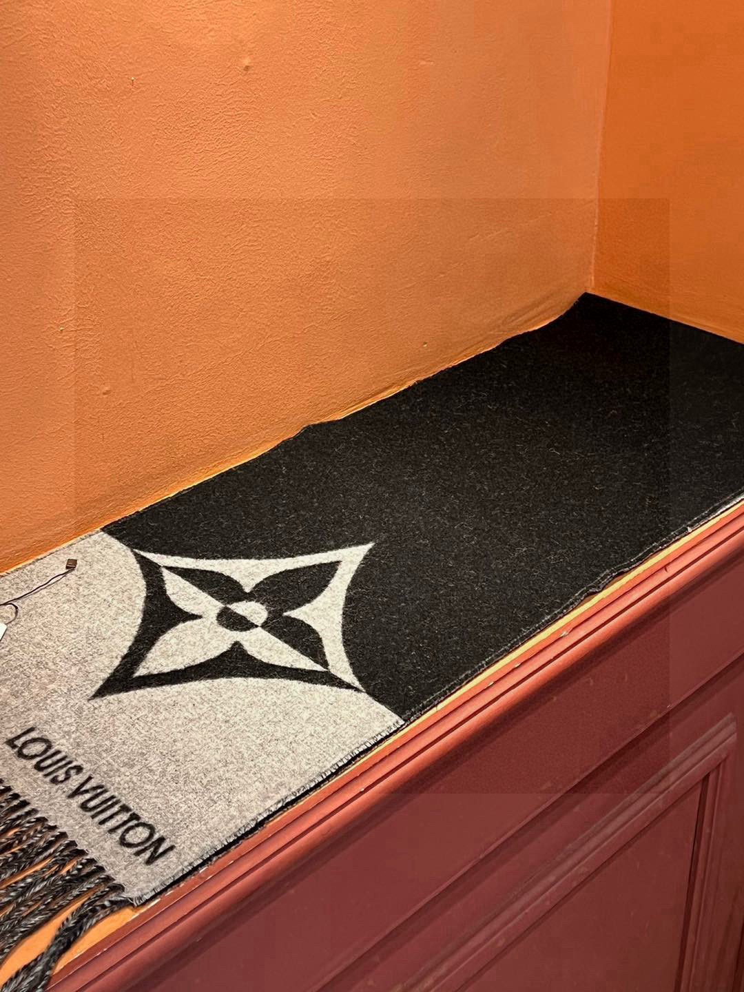 Add a touch of luxury to your wardrobe with this timeless Louis Vuitton scarf. Whether you're dressing up for a special occasion or adding a touch of elegance to your everyday look, this scarf is sure to turn heads.