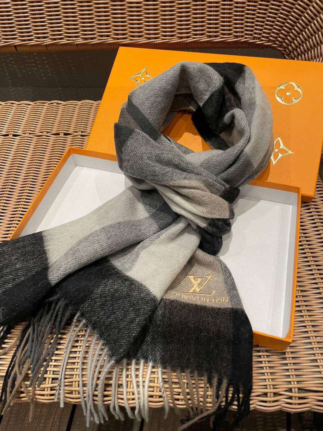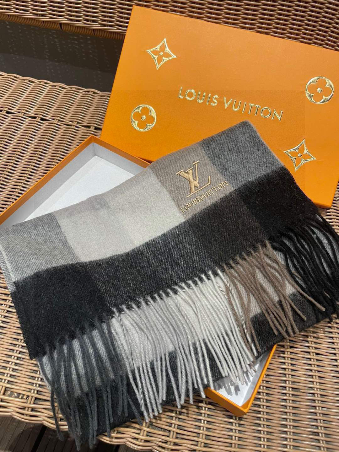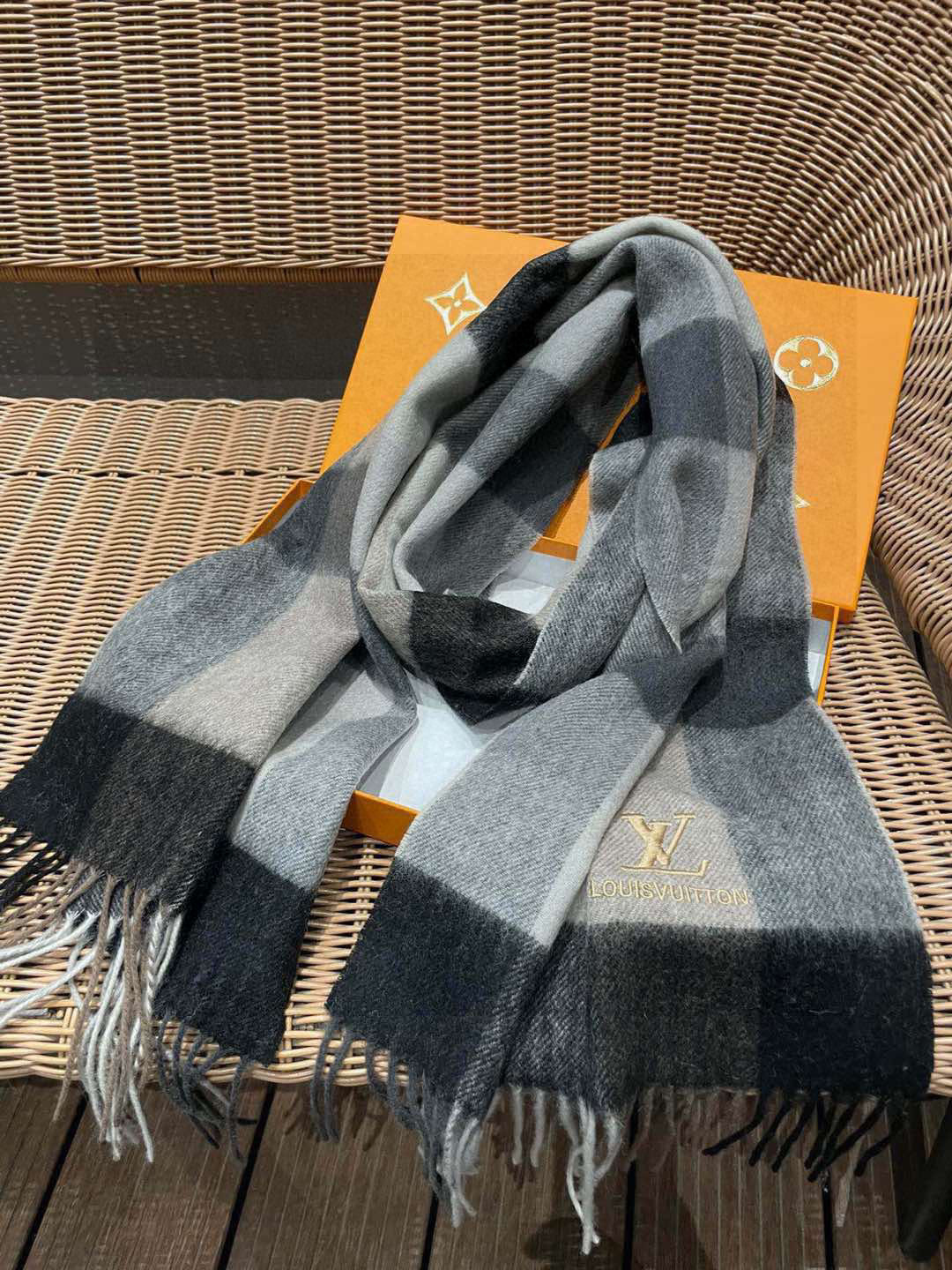 Louis Vuitton Men's Cashmere Plaid Scarf, 35 x 180 cm - Stylish & Versatile
