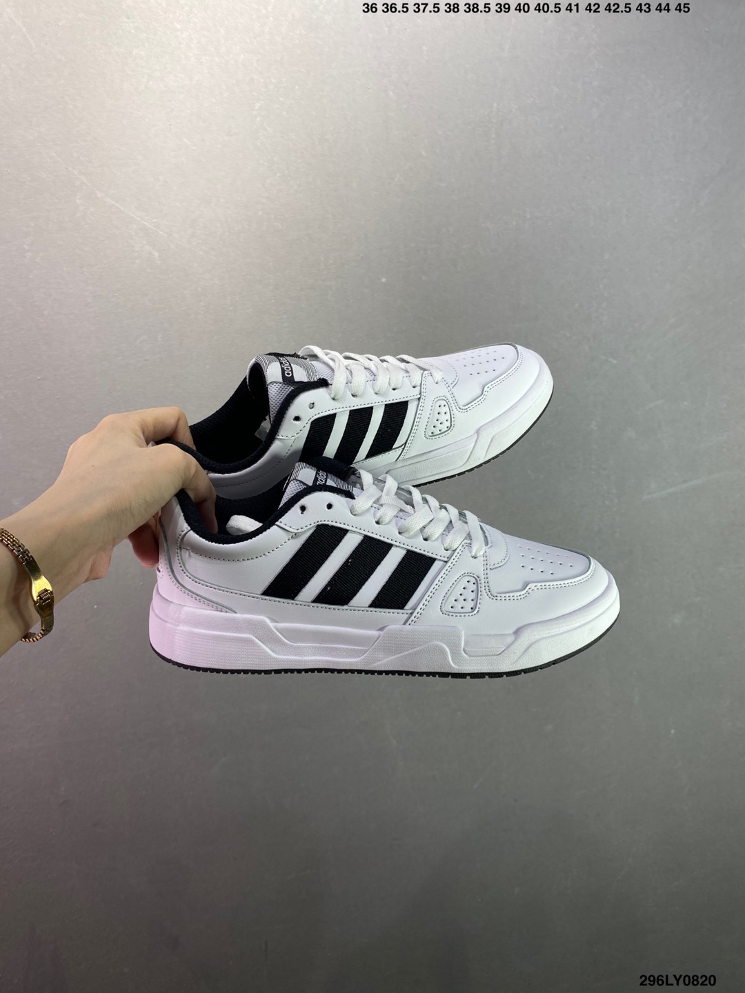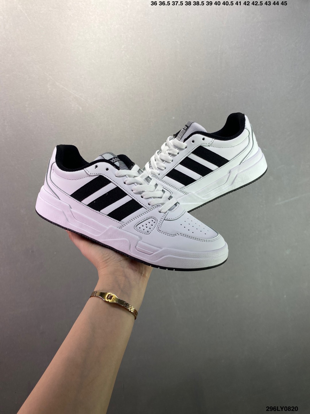 - Classic Adidas styling with signature stripes.