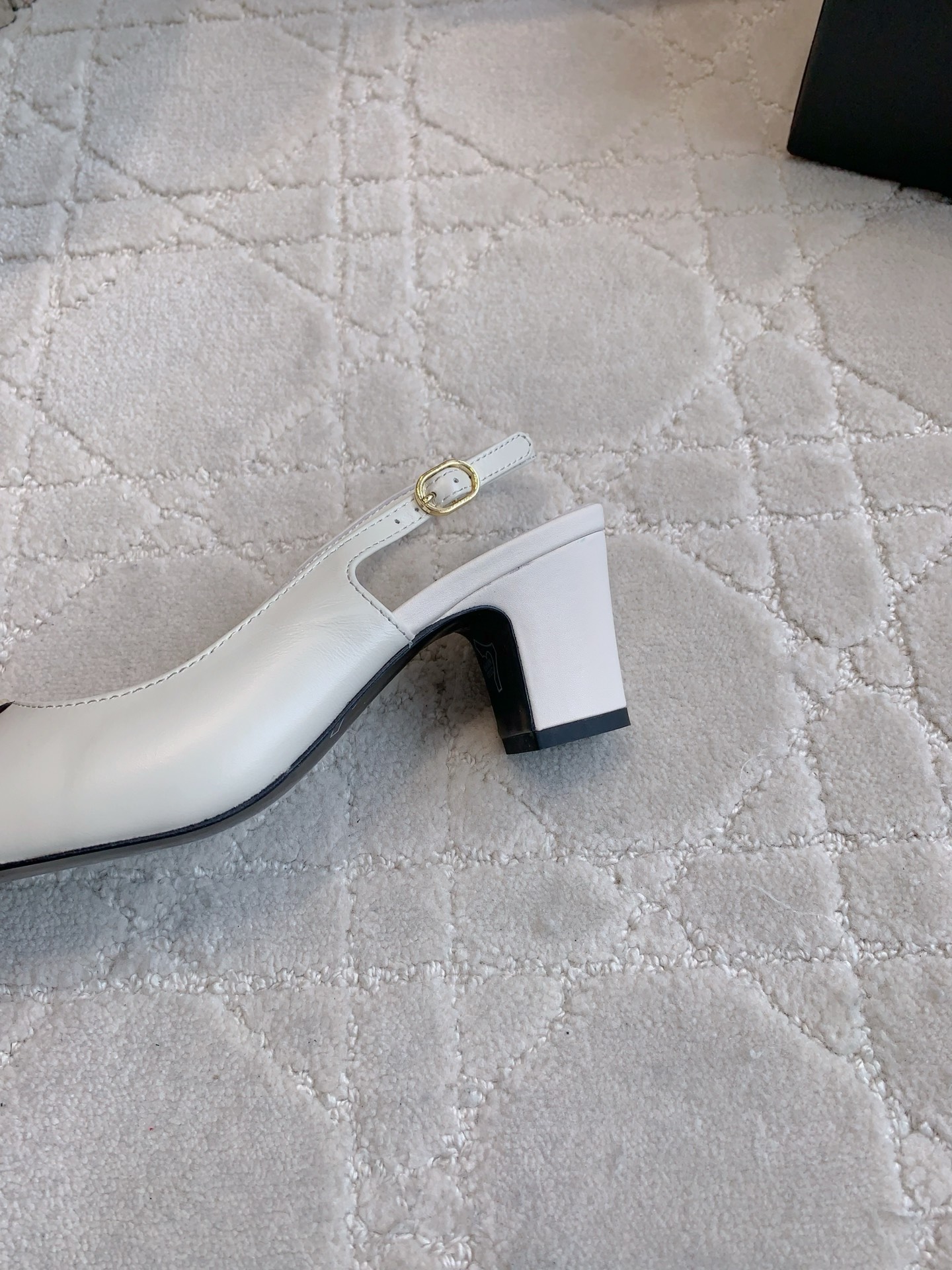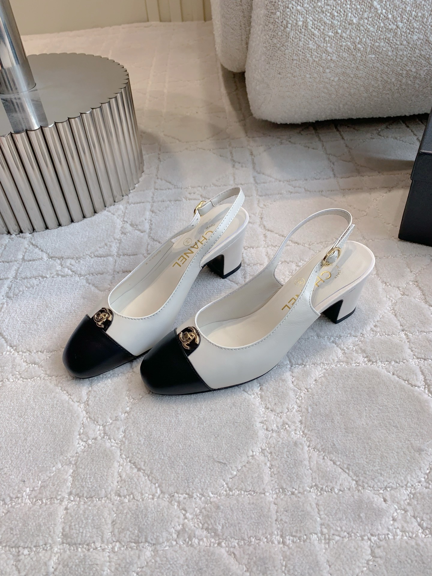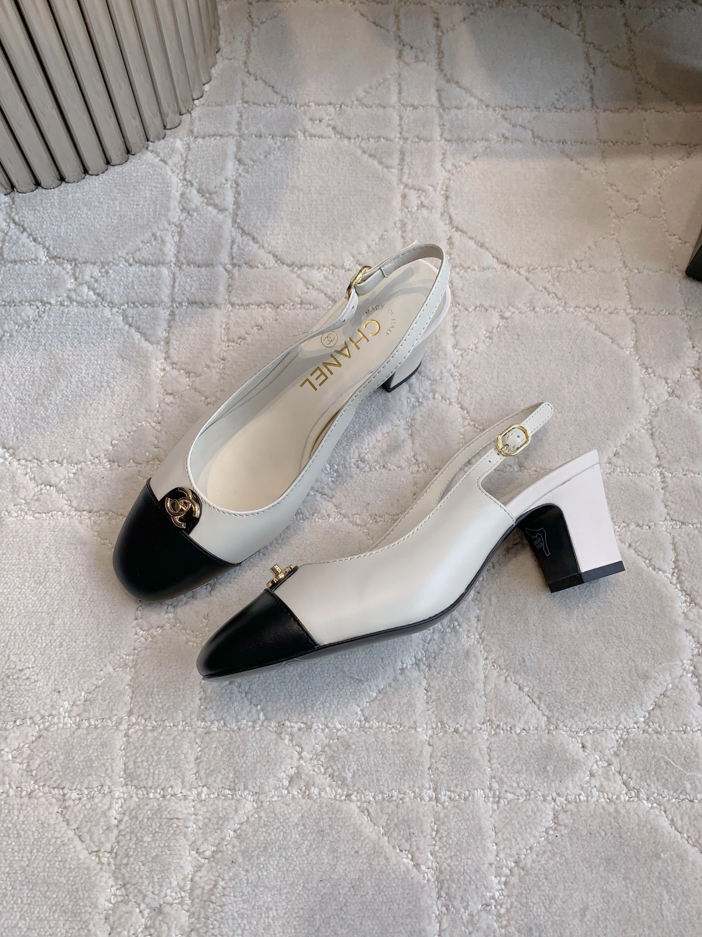 Chanel Mary Jane Slingback Pumps Lambskin Leather Black and White Heel