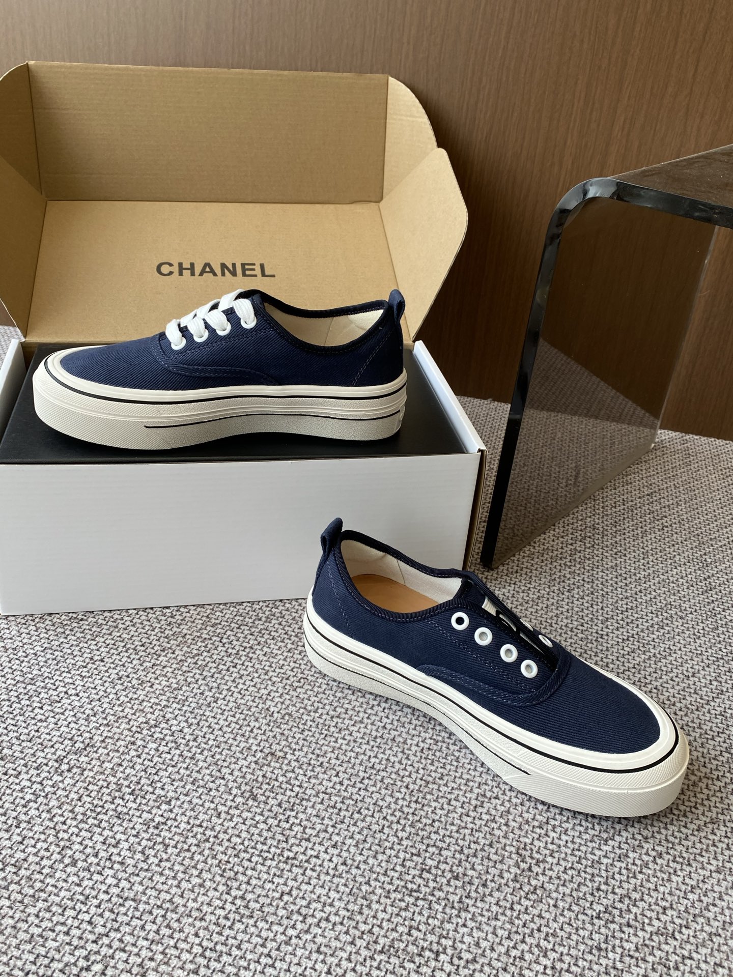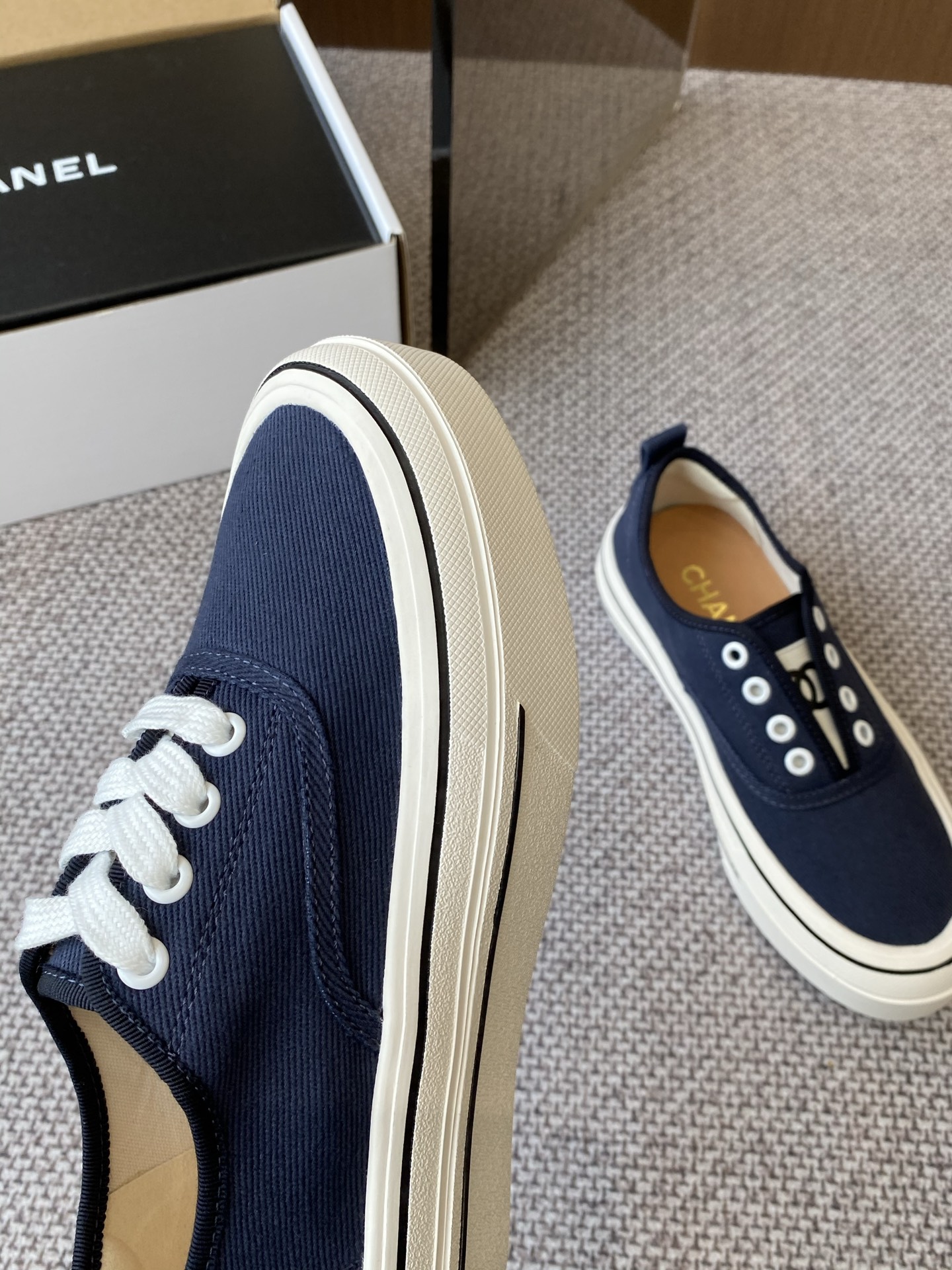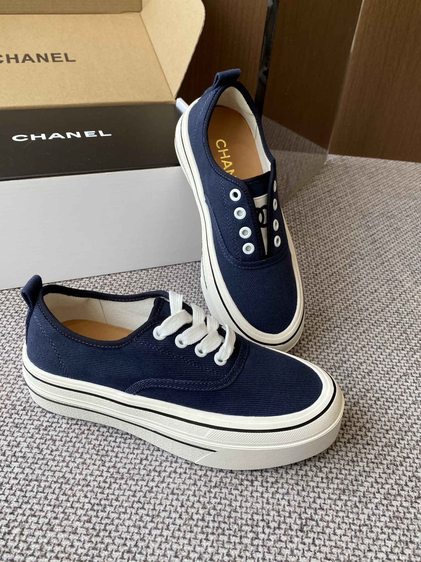 - Vintage Design: Classic canvas sneaker style reminiscent of vintage Chanel designs.