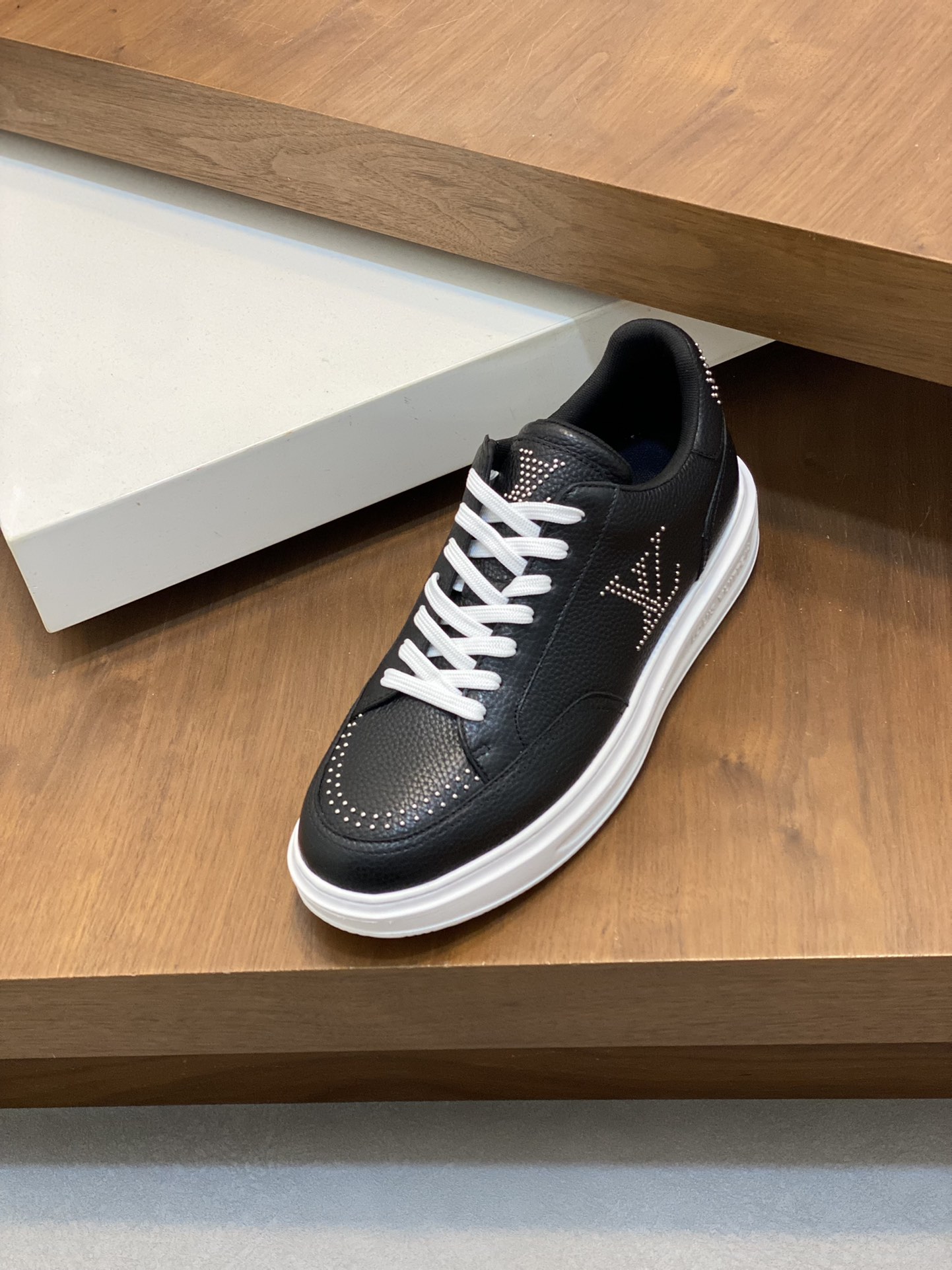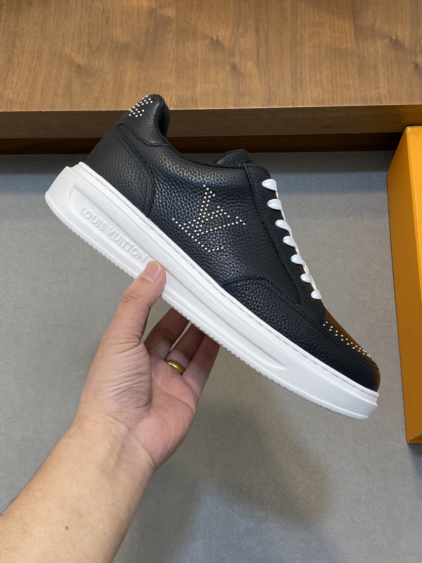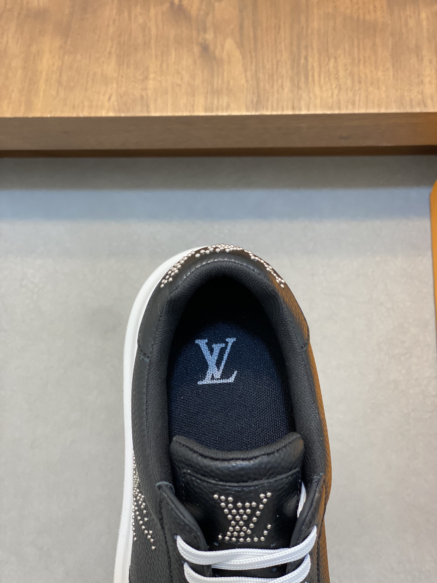 Elevate your style with these premium black leather sneakers from Louis Vuitton, featuring a sleek design and comfortable TPU sole. Perfect for a casual, refined look.
