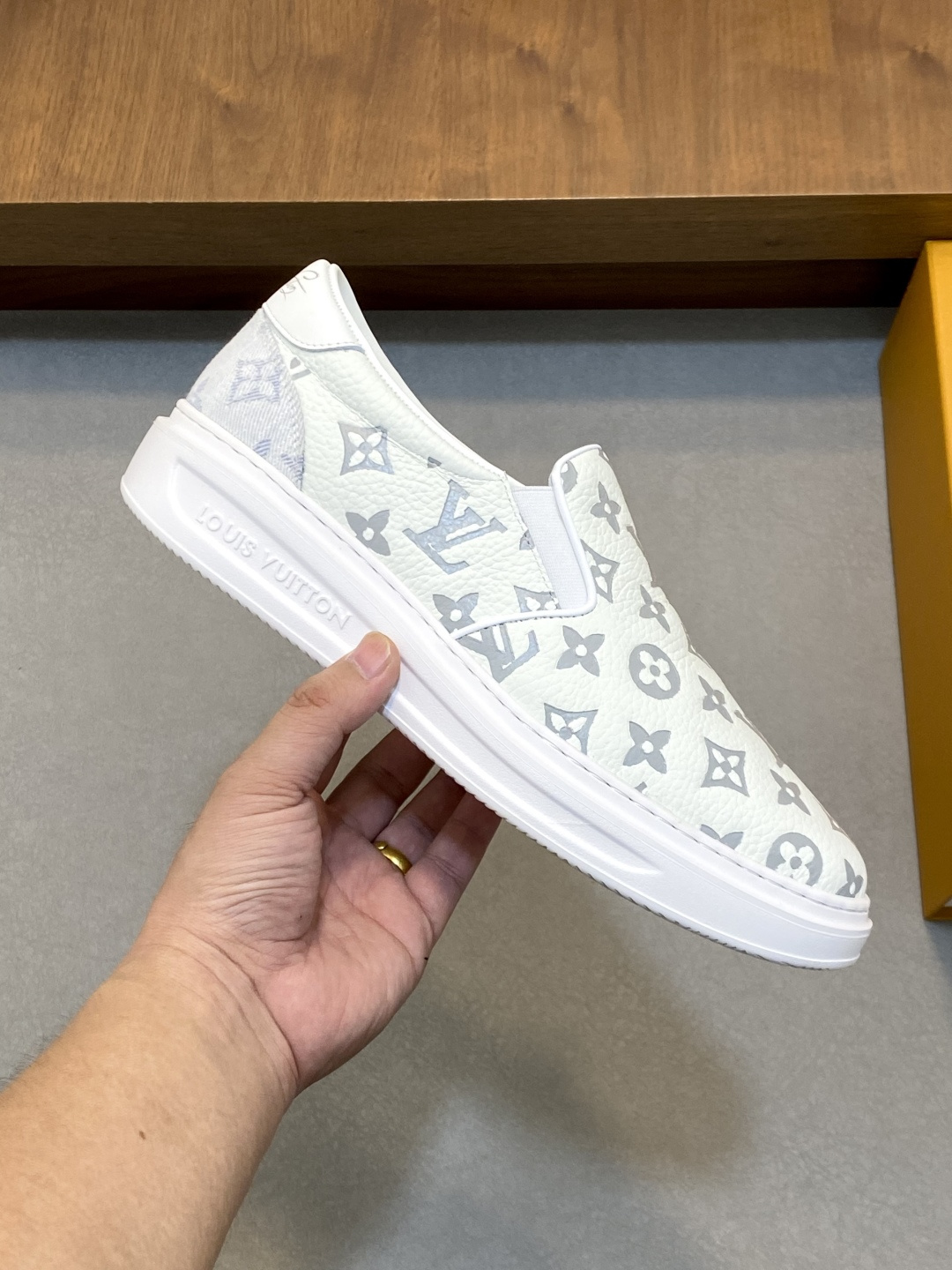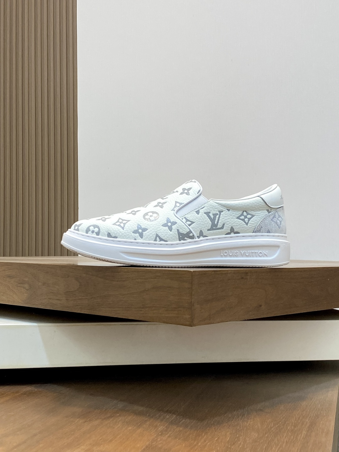 These Louis Vuitton men's slip-on sneakers blend luxury with everyday comfort. Crafted with meticulous attention to detail, they feature iconic branding and premium materials.