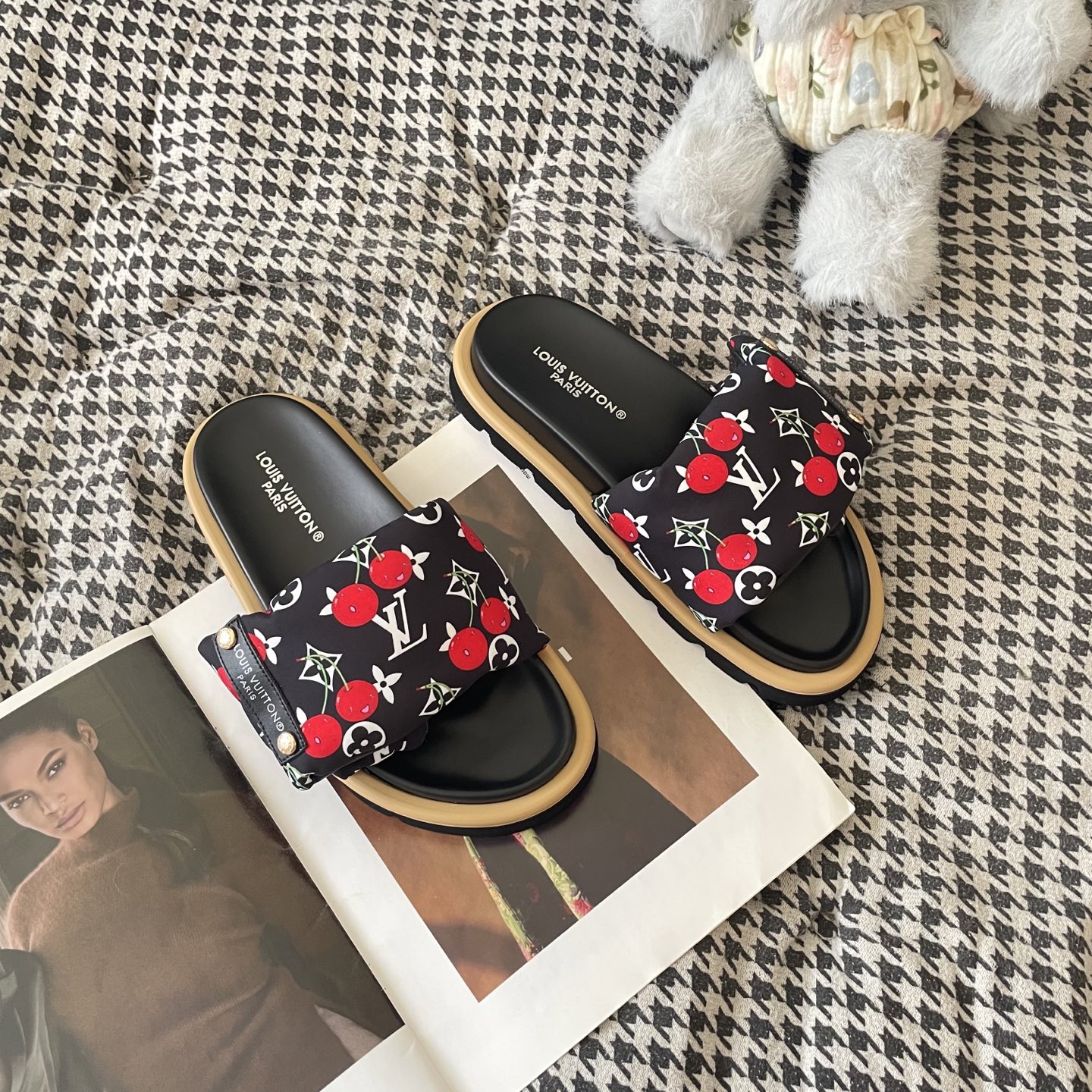 Louis Vuitton Murakami Takashi Cherry Print Slides - Limited Edition