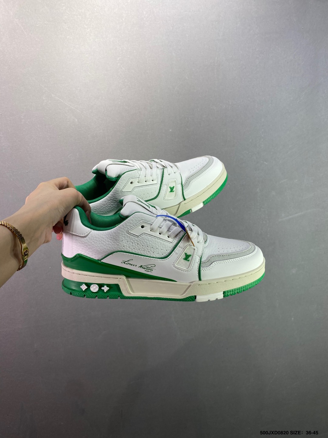 Louis Vuitton Trainer Sneaker: White & Green Leather, Virgil Abloh Design