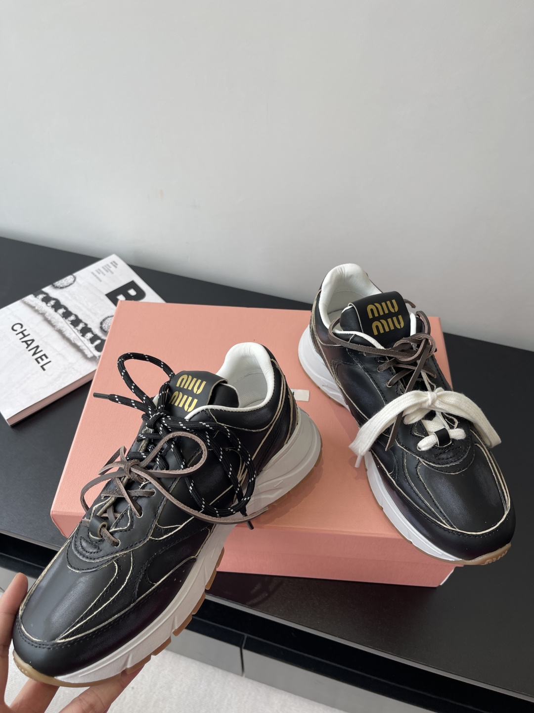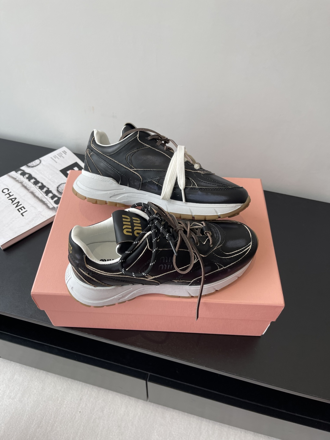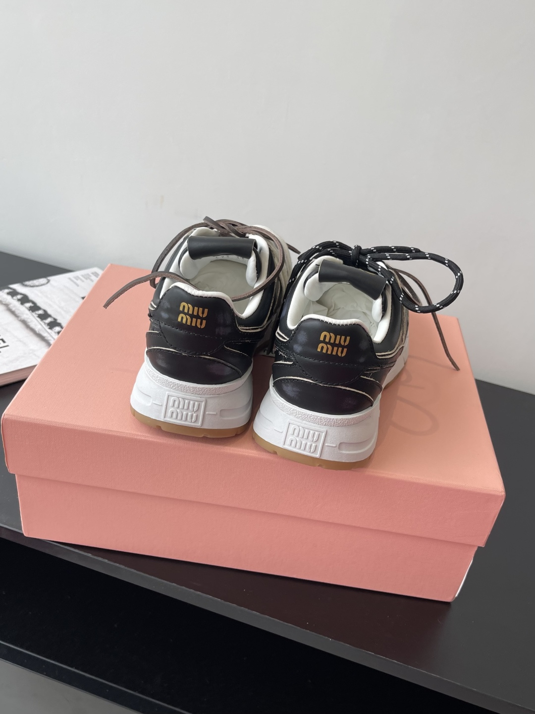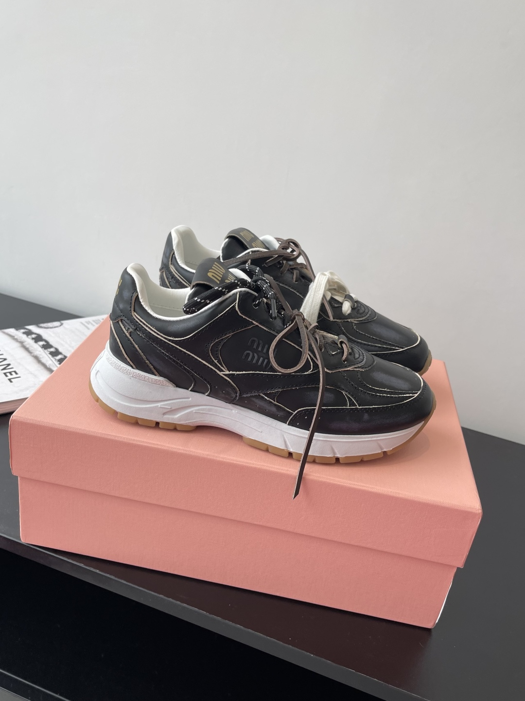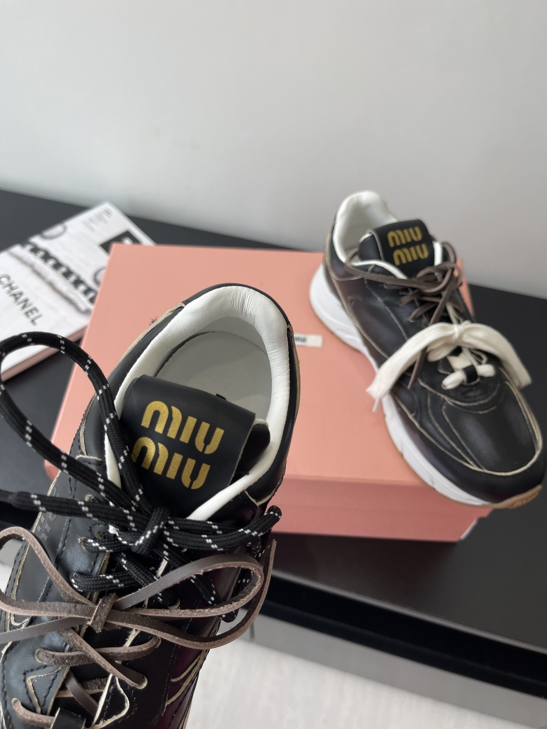 Step out in style with these Miu Miu vintage-style sneakers. Crafted in leather, these lace-up sneakers are perfect for everyday wear. Comfortable and chic!