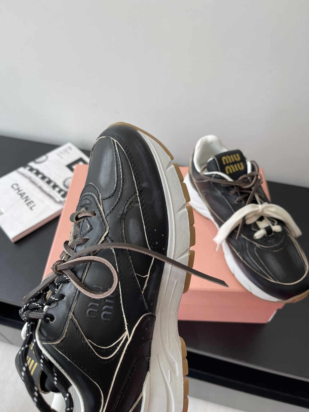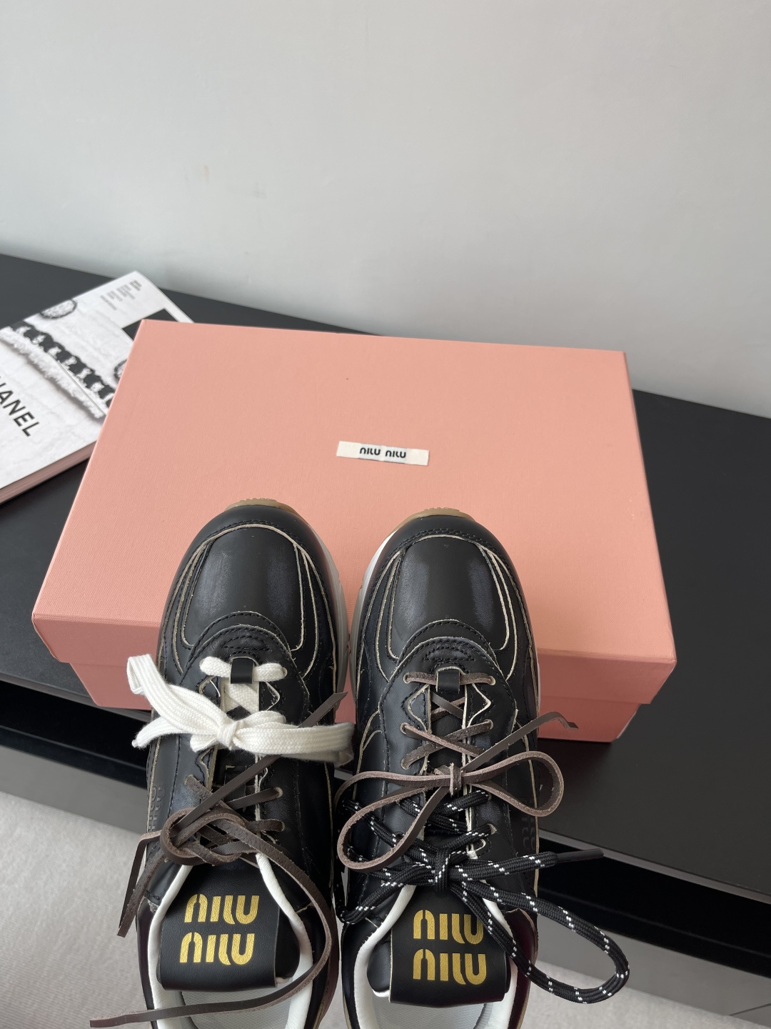 Miu Miu Women's Leather Lace-Up Sneakers - Black, Vintage Style