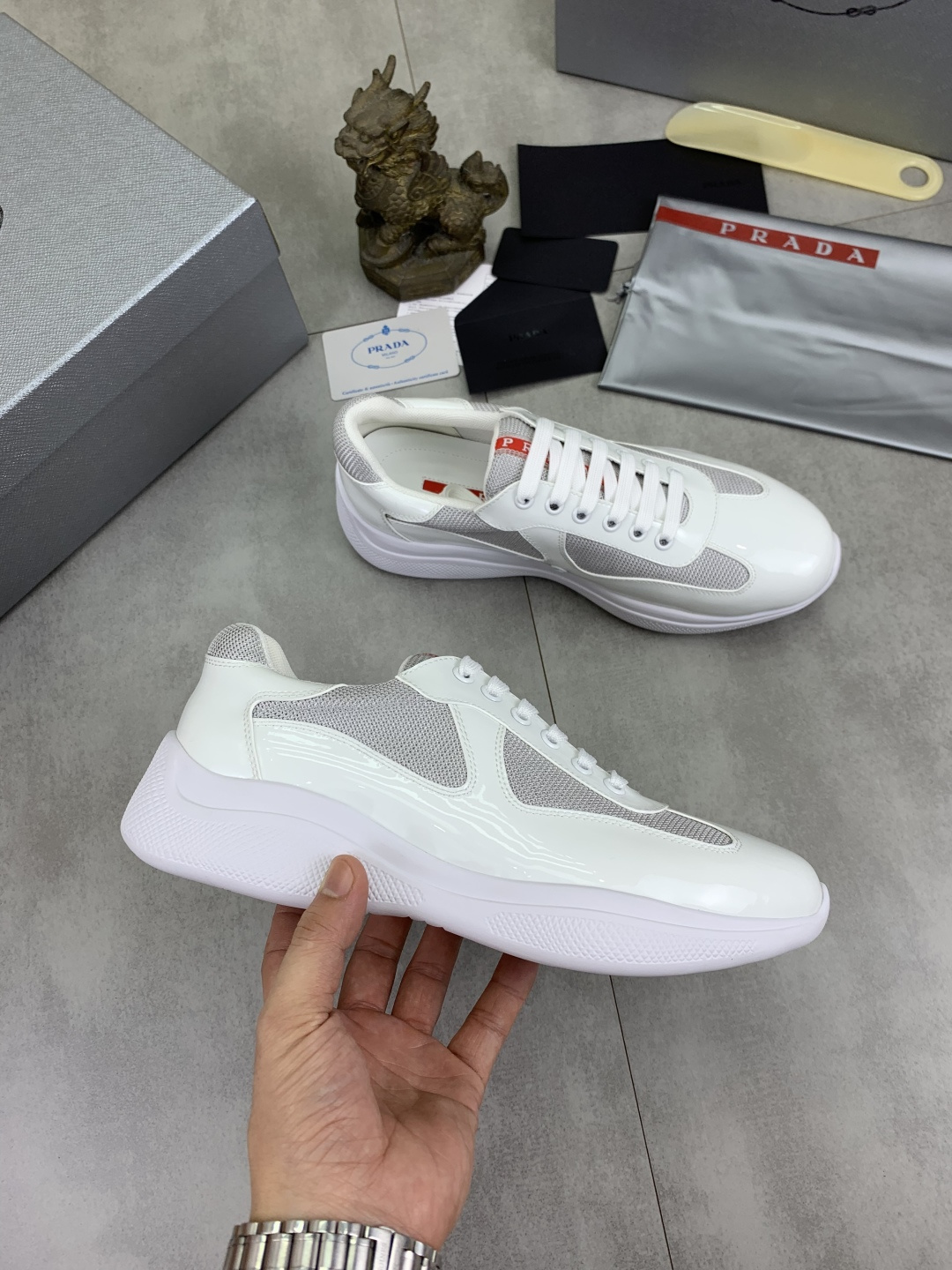In conclusion, the Prada Men's Fashion Sneakers are an investment in style and comfort. Elevate your footwear collection with these uniquely designed sneakers.
