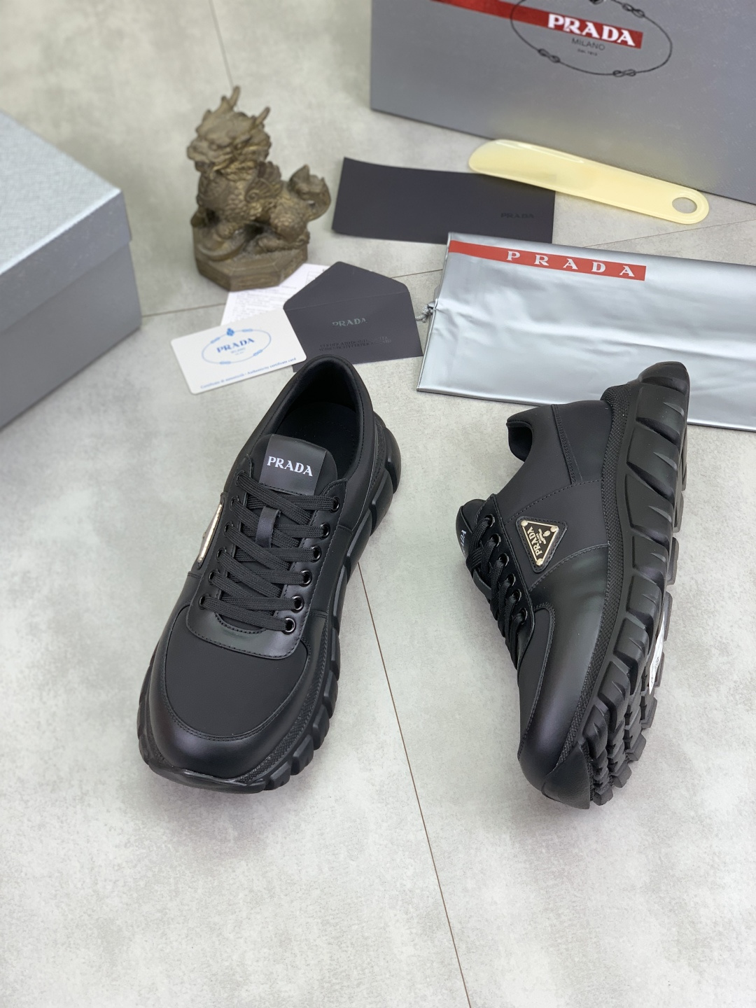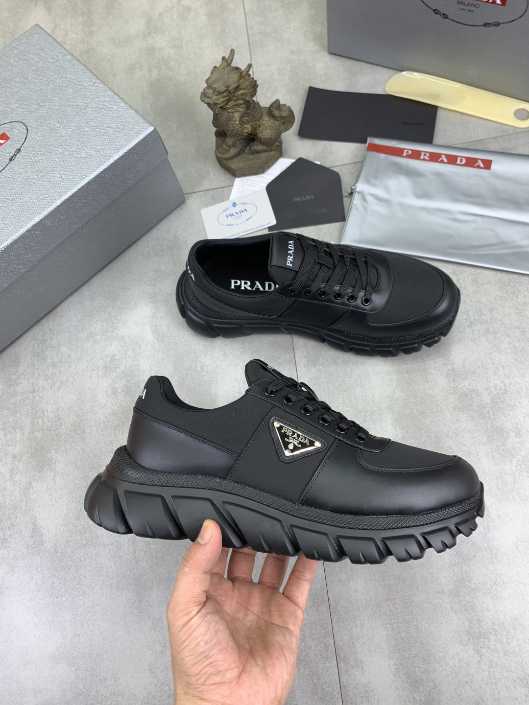 These Prada sneakers are more than just shoes; they're a statement. A perfect blend of luxury and practicality, they will keep you looking sharp and feeling comfortable wherever you go.