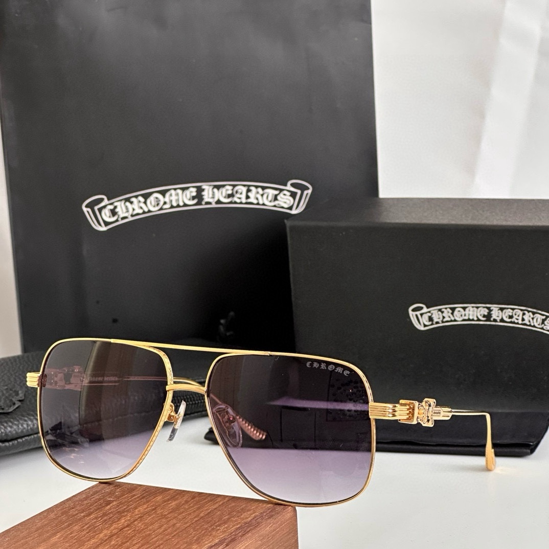 Chrome Hearts CH8014 Gold Frame Square Sunglasses - Unisex, Top Quality
