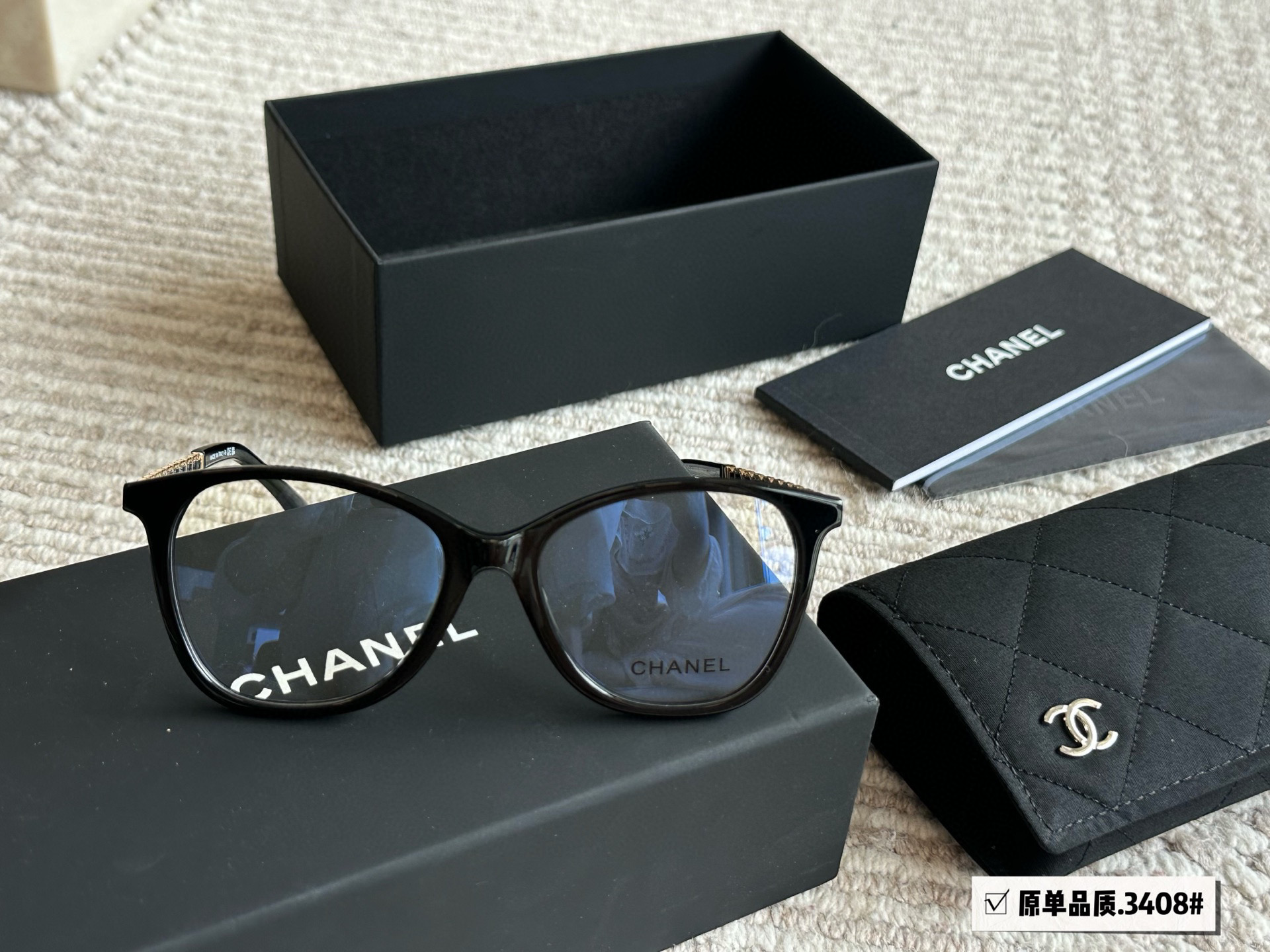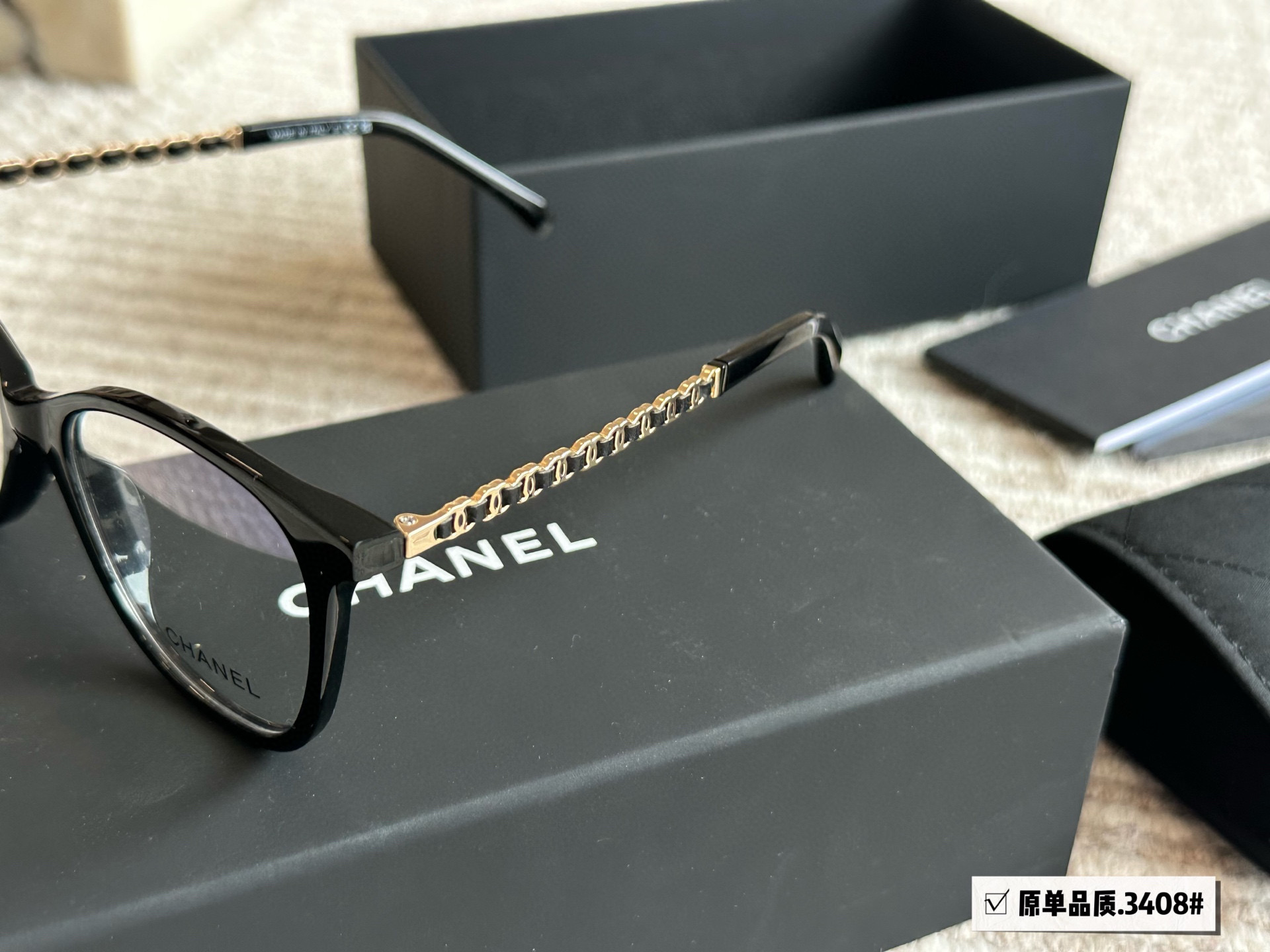 These Chanel-style black frame glasses are the perfect accessory to elevate your style. With a timeless design and comfortable fit, these glasses are sure to become your go-to eyewear.
