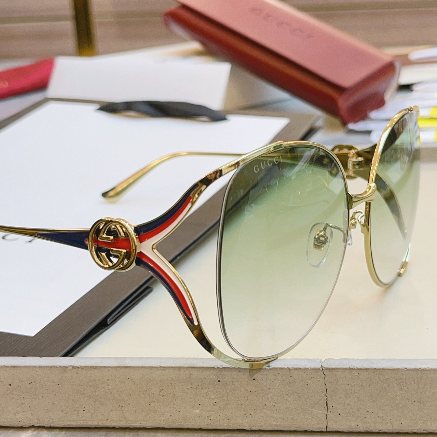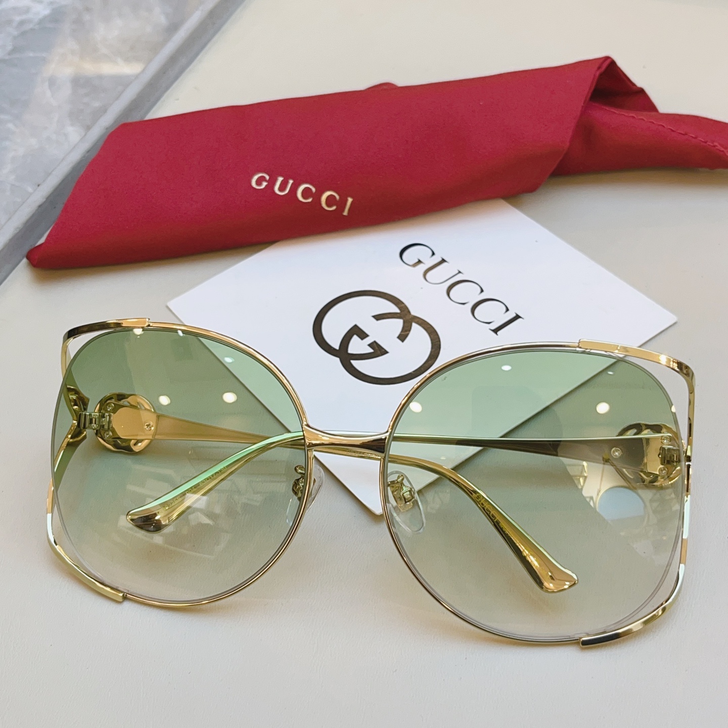 With their timeless design and superior craftsmanship, these Gucci sunglasses are sure to turn heads. Whether you're lounging by the pool or strolling through the city, they'll add a touch of glamour to any outfit.