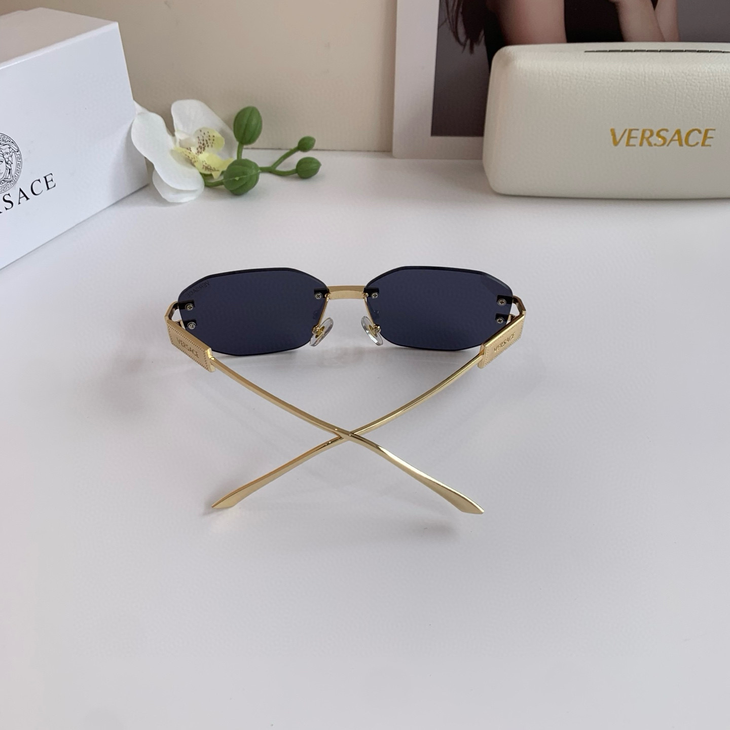 Elevate your style with these luxurious rimless sunglasses from Versace. Crafted with premium materials and featuring the iconic Versace logo, these sunglasses exude elegance and sophistication.