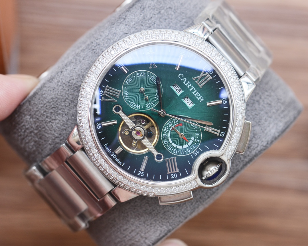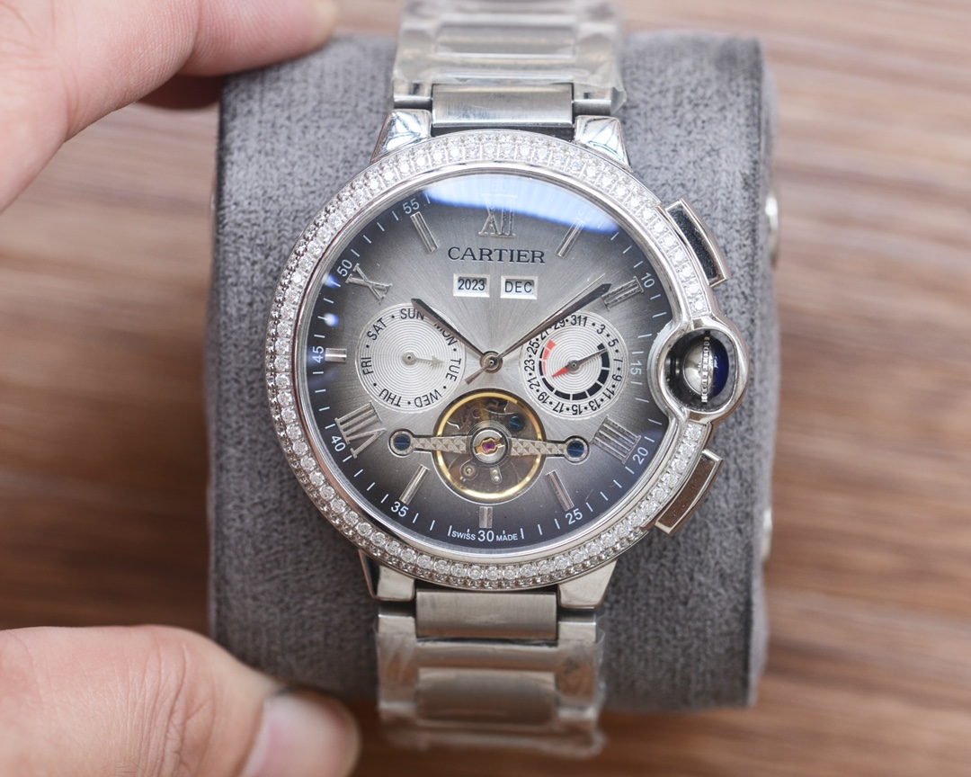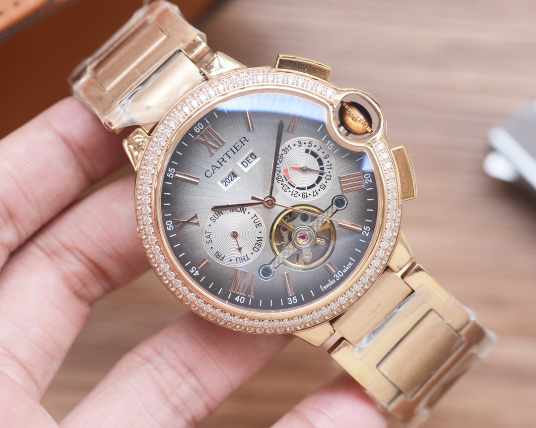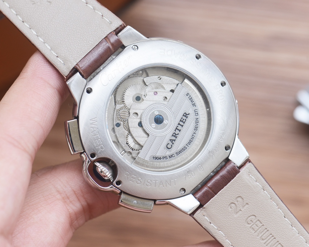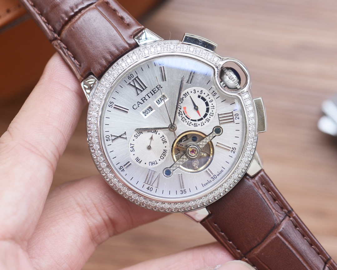 Cartier Style Automatic Men's Watch with Leather or Stainless Steel Band