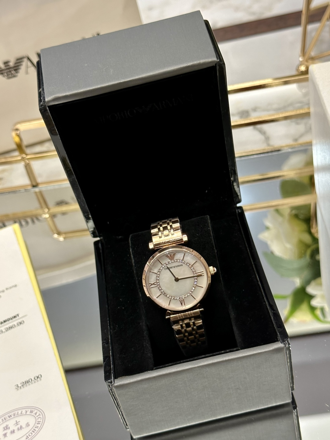 The Emporio Armani women's watch is a stylish and reliable timepiece that will enhance your everyday look. Its durable construction and elegant design make it a must-have accessory.