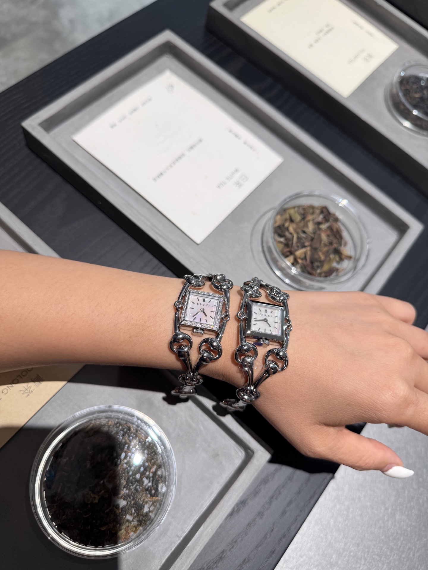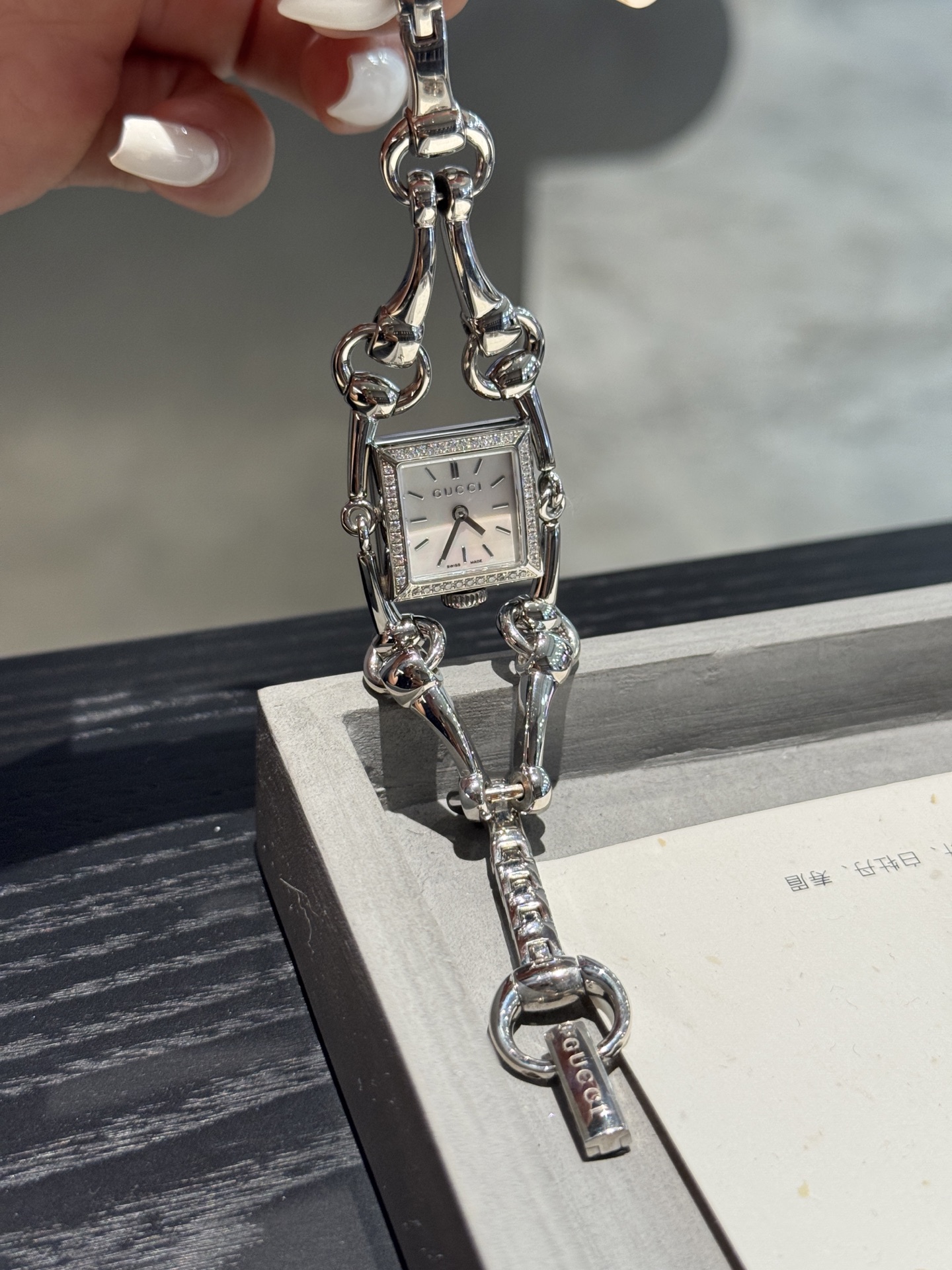 This exquisite Gucci watch combines timeless elegance with modern design. The iconic horsebit detail and sparkling diamond accents make it a luxurious statement piece.