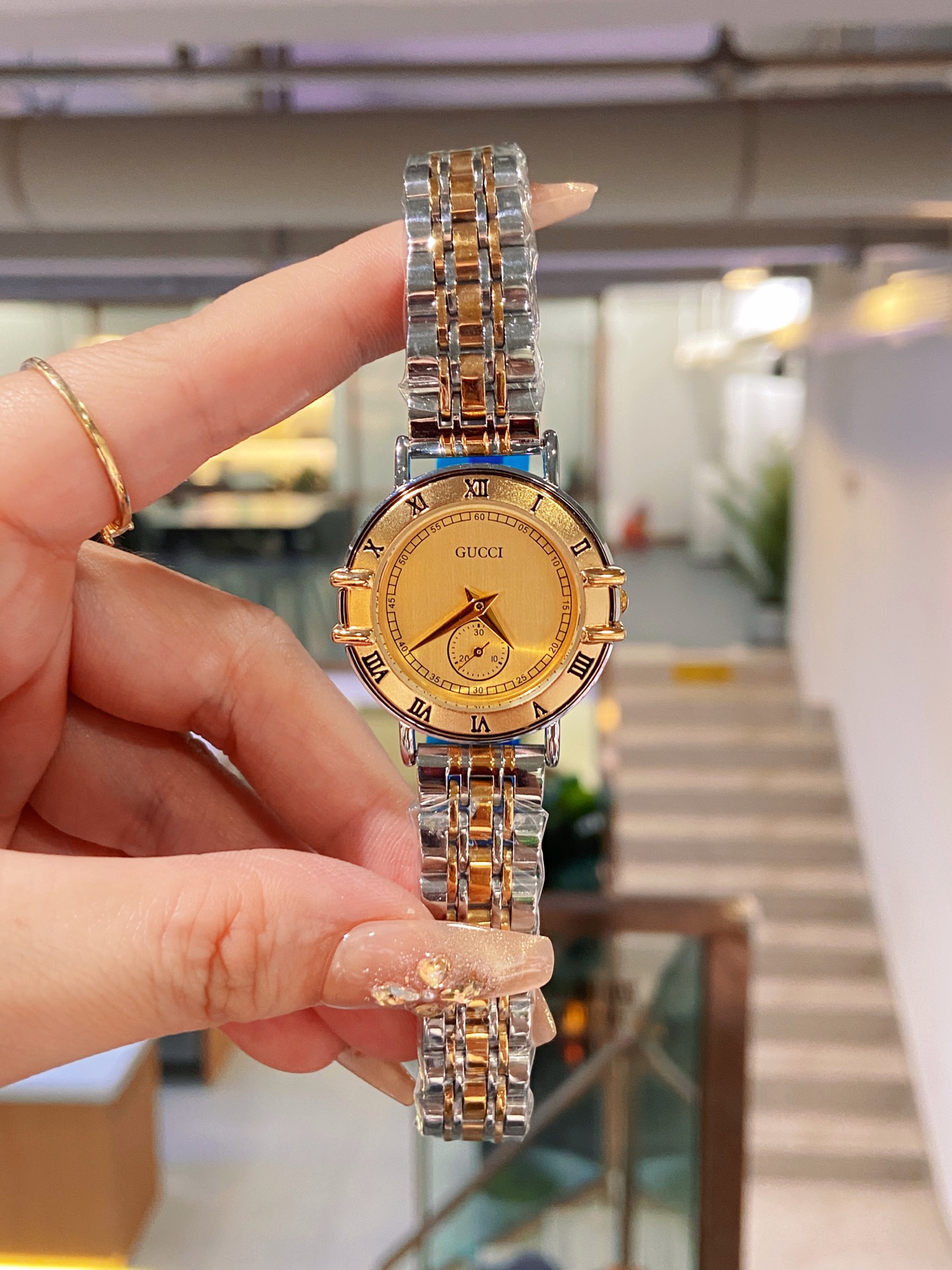 - Band Material: Gold stainless steel for durability and a luxurious look.