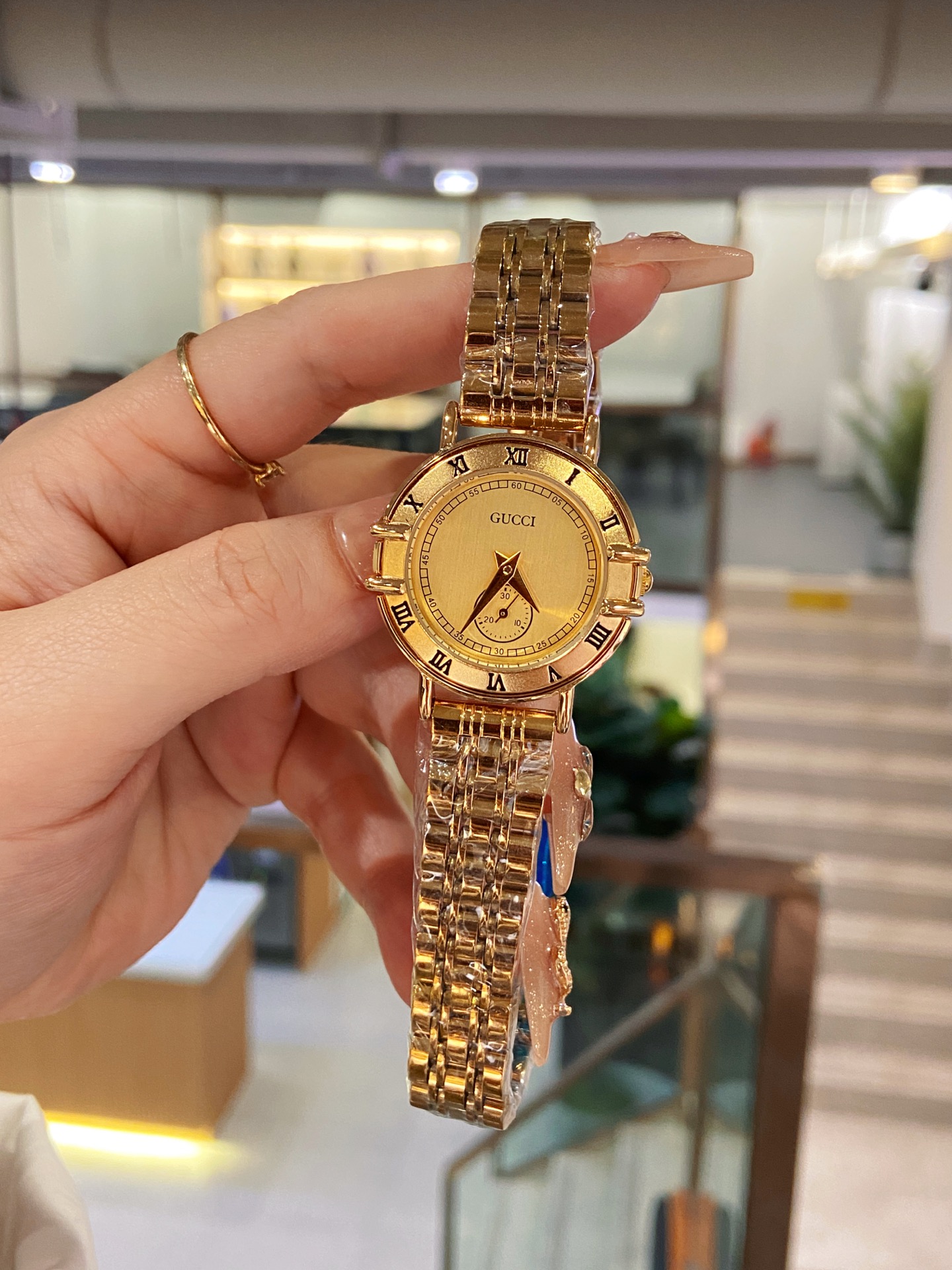 This Gucci watch is more than just a timepiece; it's a fashion statement. Its elegant design and high-quality materials make it a must-have accessory for any woman who appreciates luxury and style.