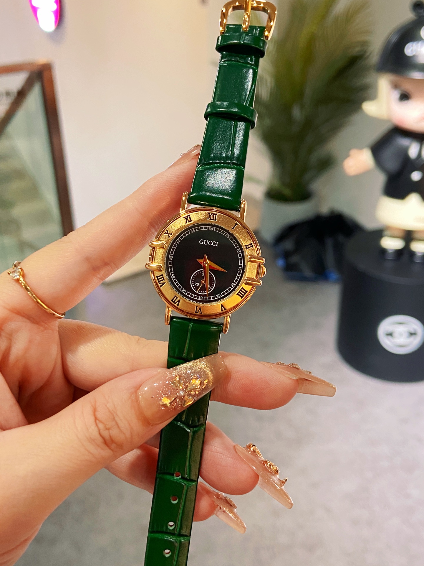 This Gucci watch is a true embodiment of minimalist design, offering a simple yet captivating aesthetic. Its unique dial design breaks away from the ordinary, providing a touch of individuality and taste. This timepiece is more than just an accessory; it's a statement of personal style.