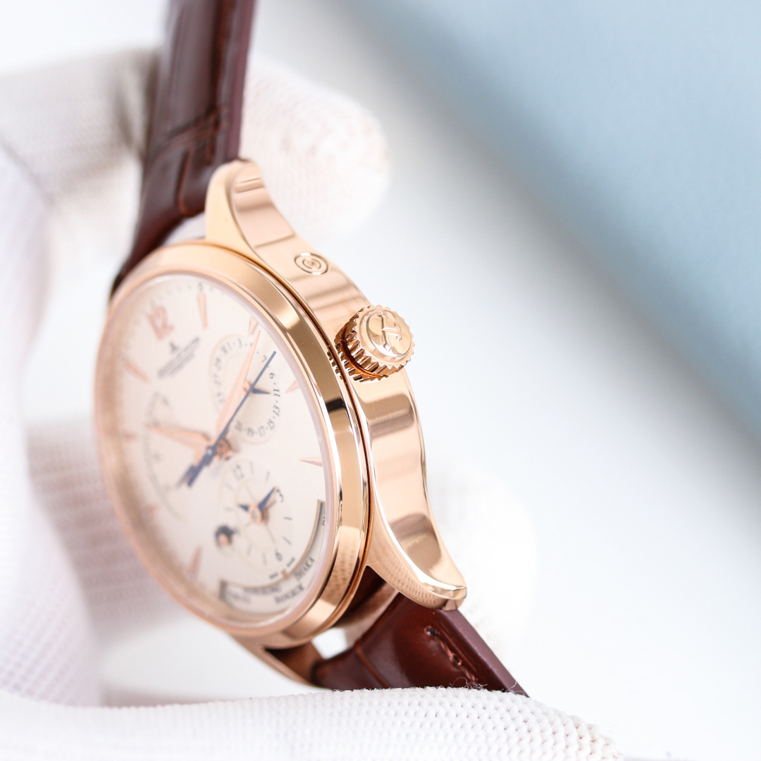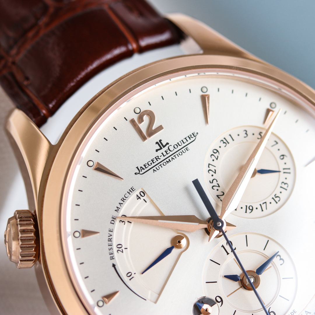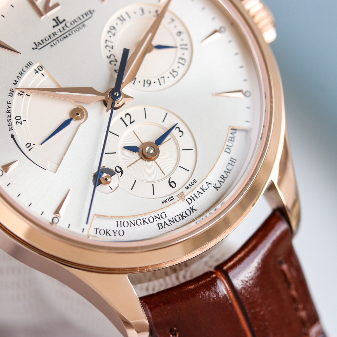 Jaeger-LeCoultre Master Geographique Rose Gold Brown Leather Strap Watch