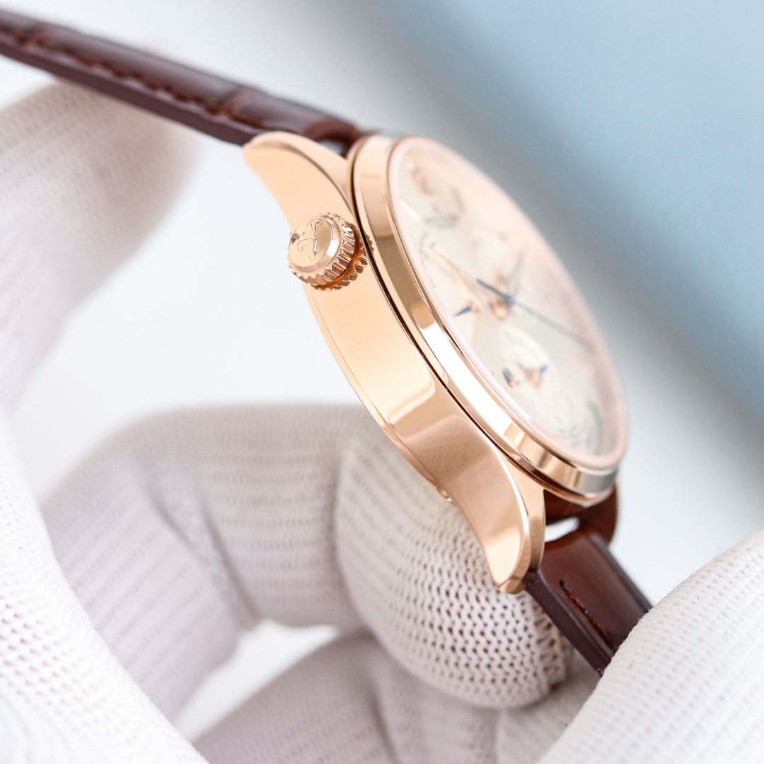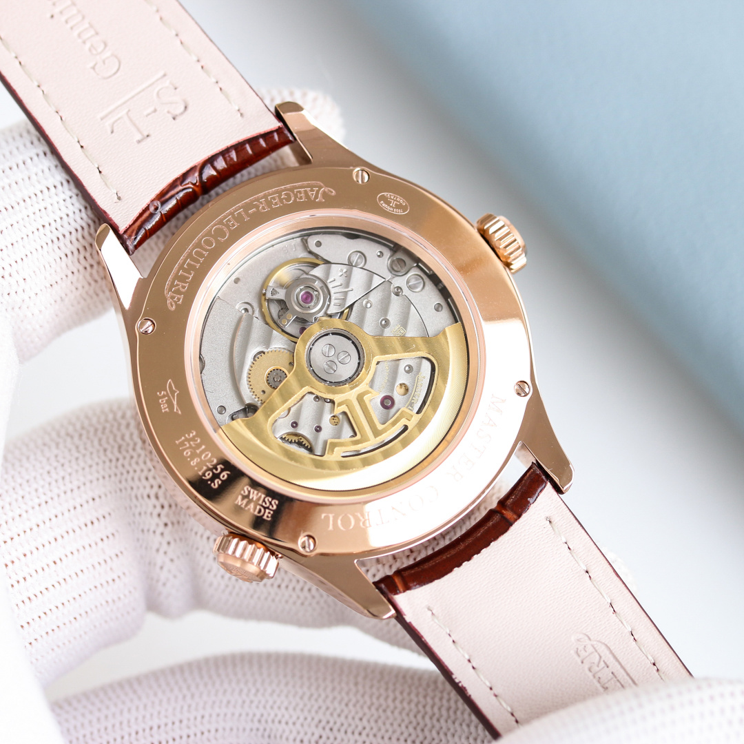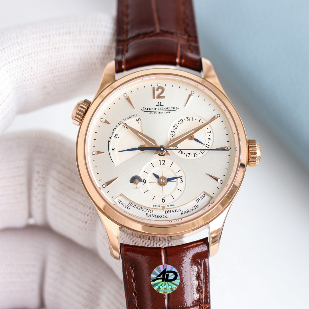 Jaeger-LeCoultre Master Geographique Rose Gold Brown Leather Strap Watch