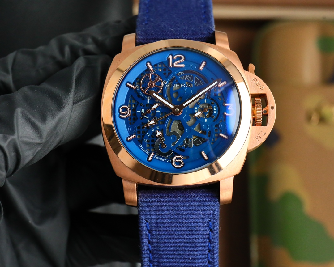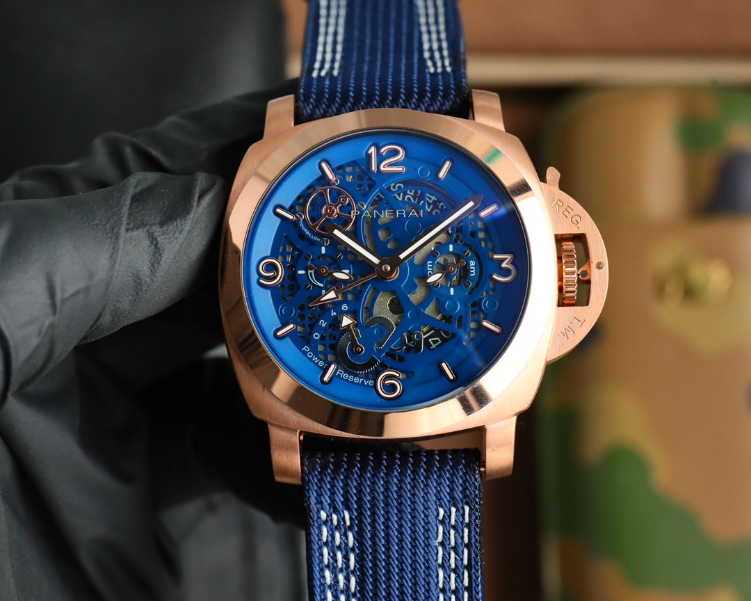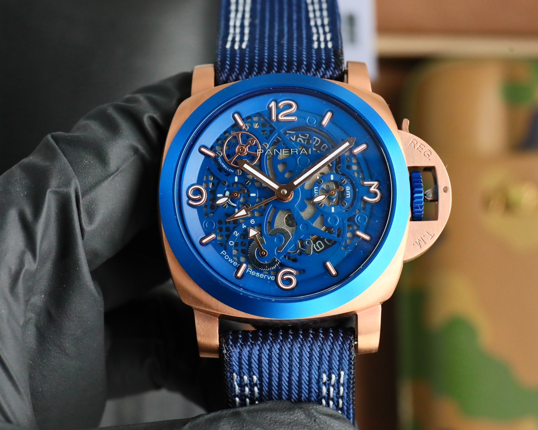 Panerai Men's Watch, Rose Gold Case, Blue Skeleton Dial, Automatic Movement