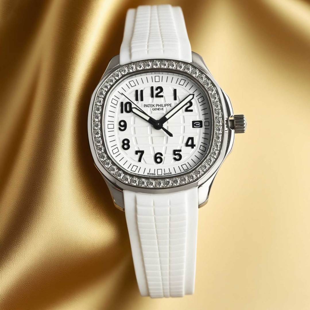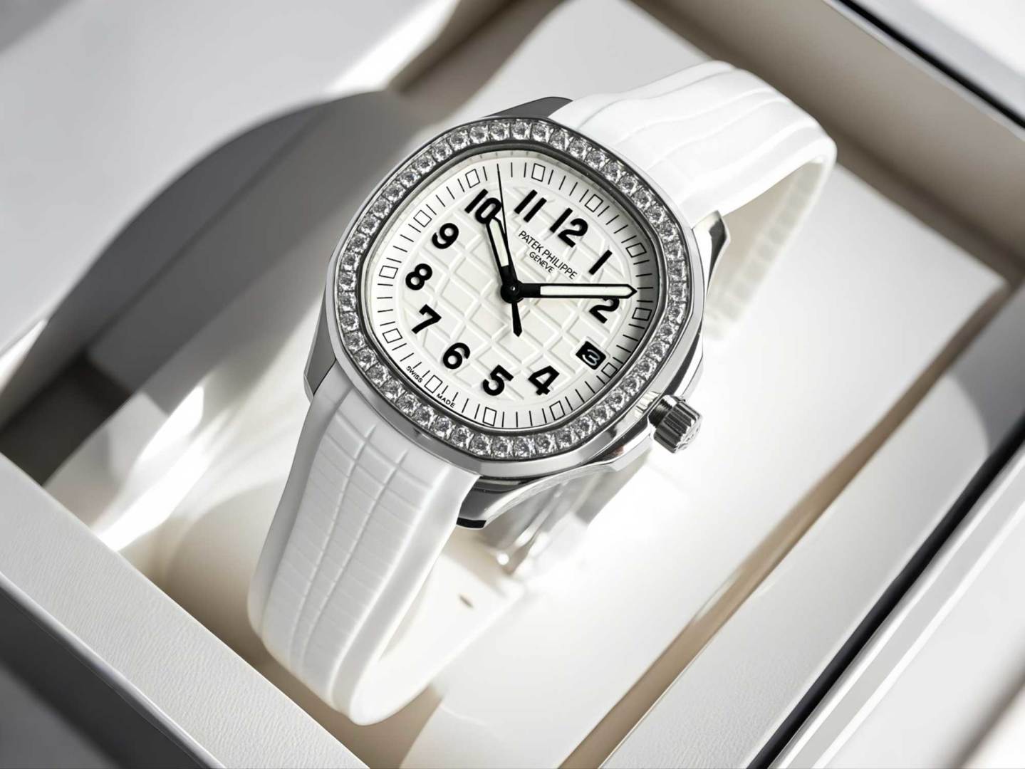 Patek Philippe Aquanaut Diamond Watch, White Rubber Strap, Swiss Movement
