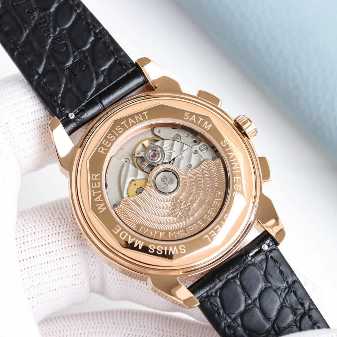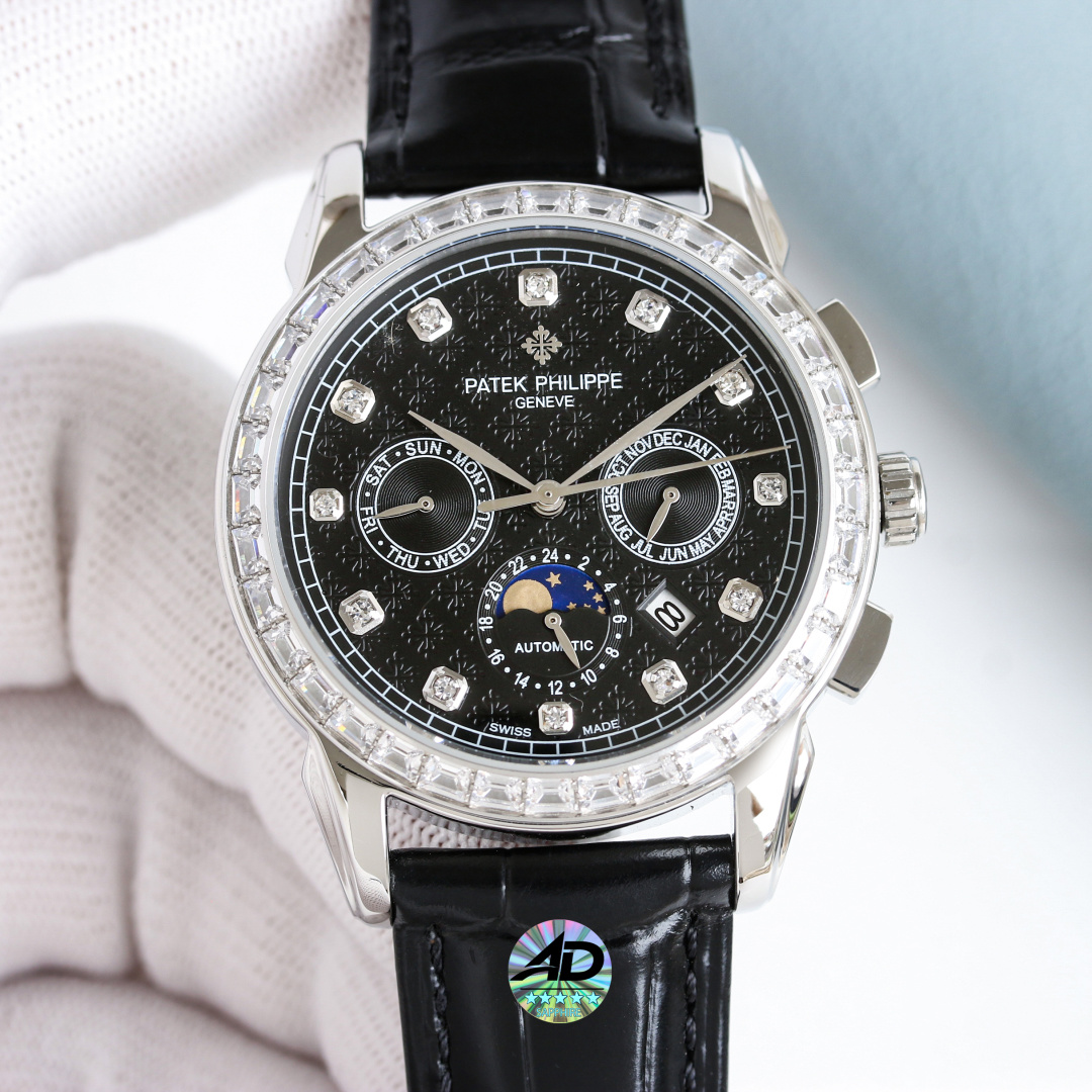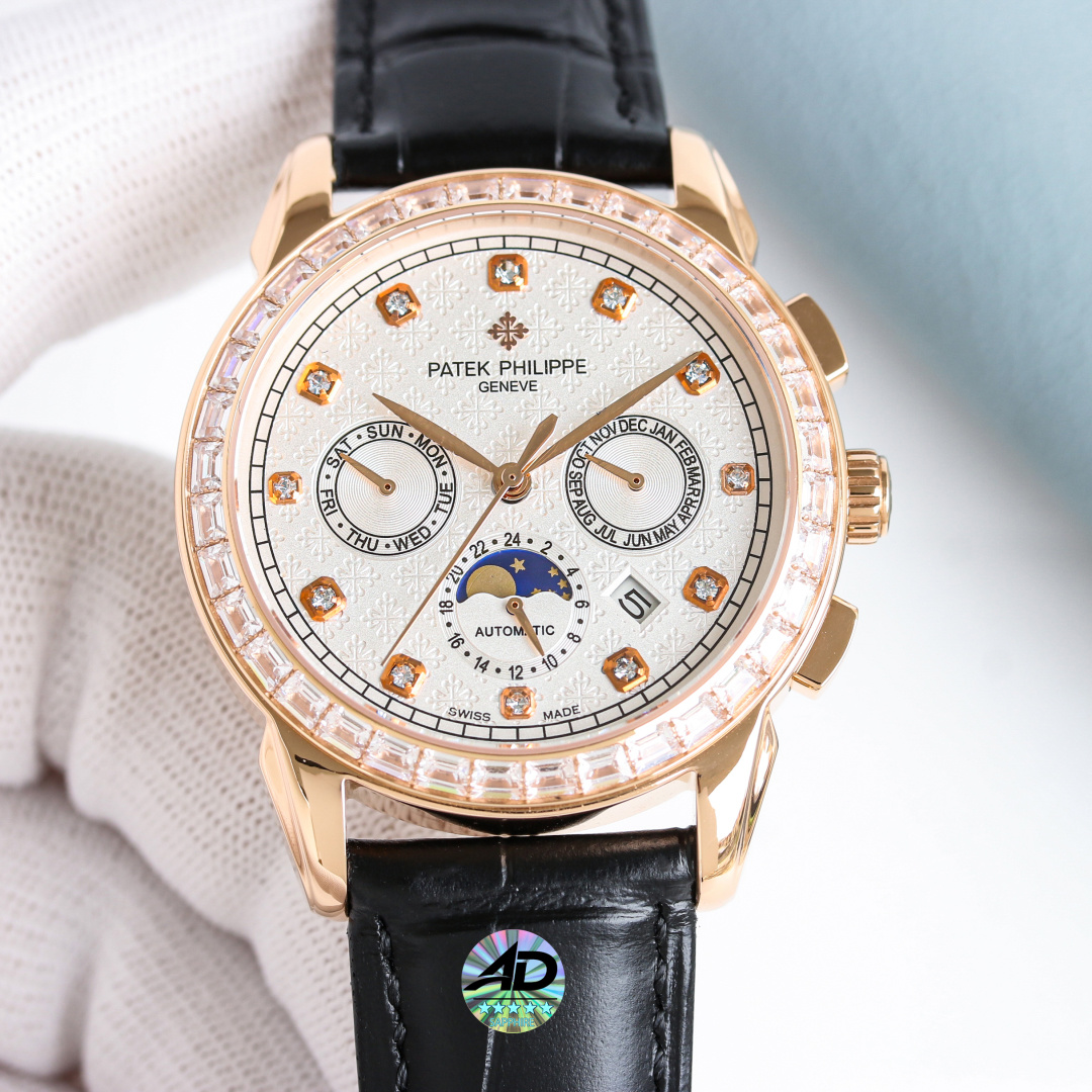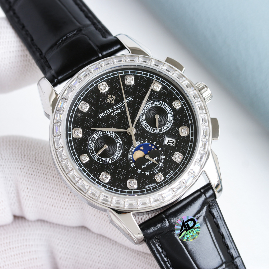 Experience luxury with this Patek Philippe watch. Featuring a sophisticated design, multifunction movement, and diamond-set bezel, it's a timeless masterpiece.