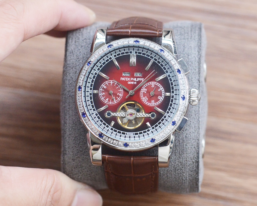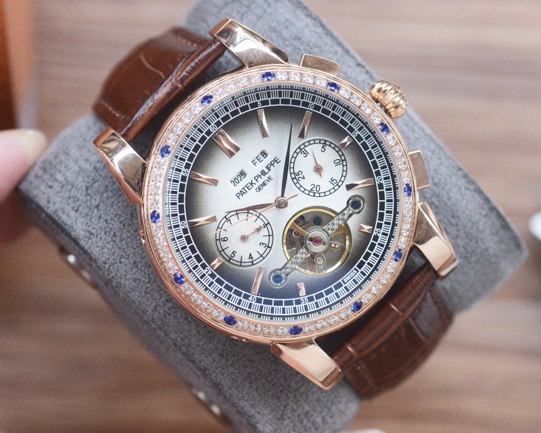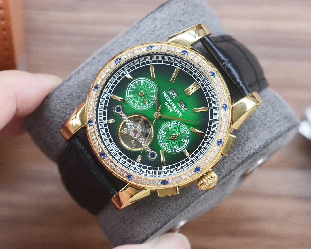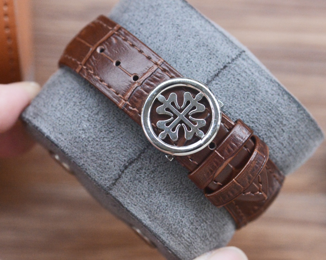 This exquisite Patek Philippe men's wristwatch combines classic design with modern functionality. Featuring a precise automatic mechanical movement and a luxurious leather band, this timepiece is a statement of sophistication. Perfect for any occasion, it adds a touch of elegance to your style.