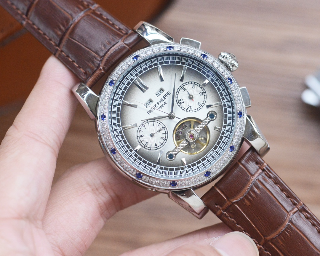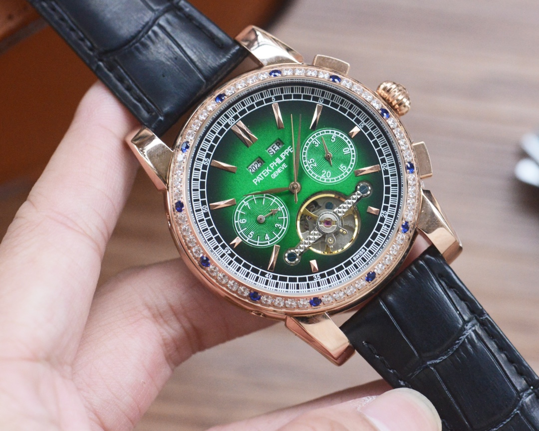 Elegant Patek Philippe men's automatic mechanical wristwatch with a leather band. Perfect for adding a touch of sophistication to any outfit.