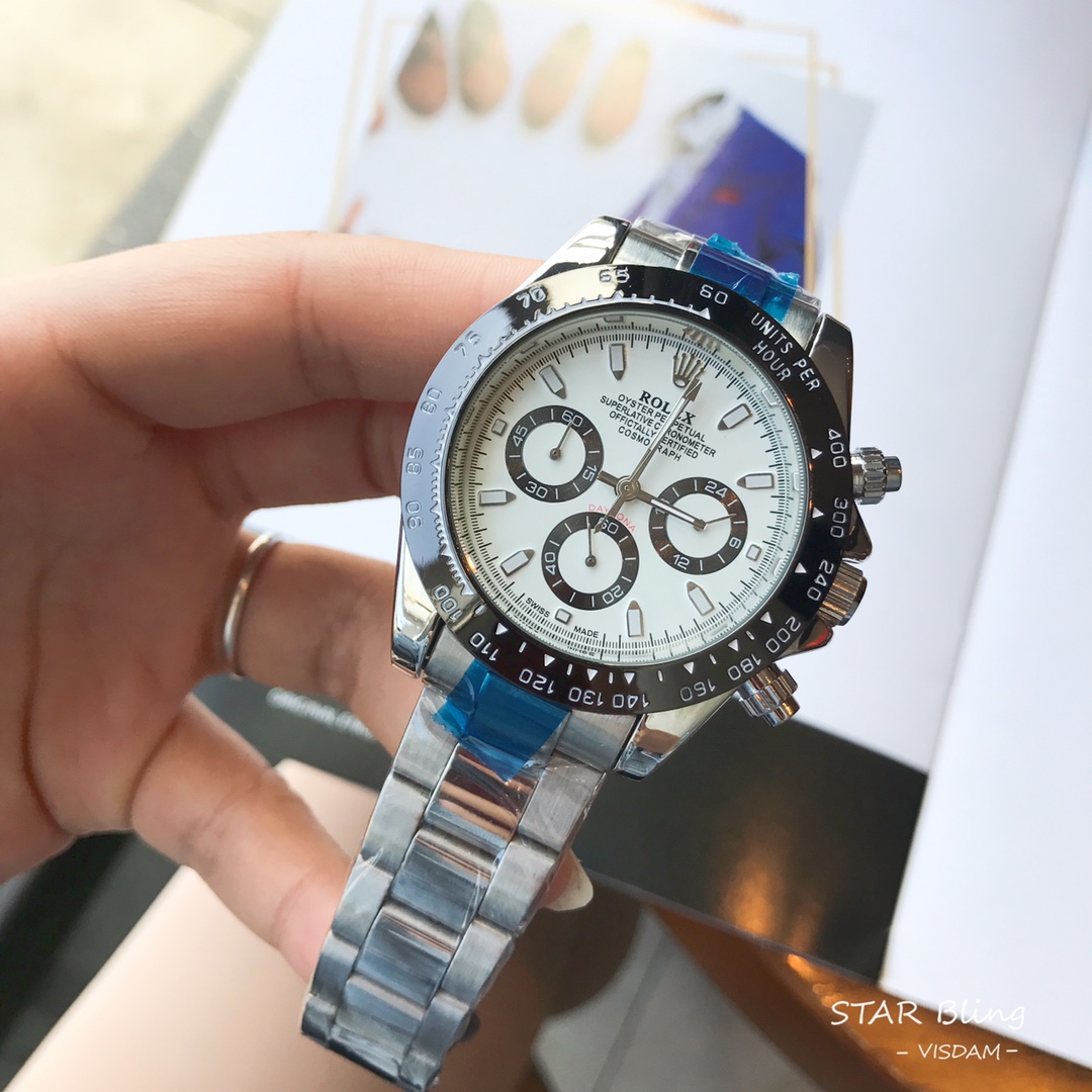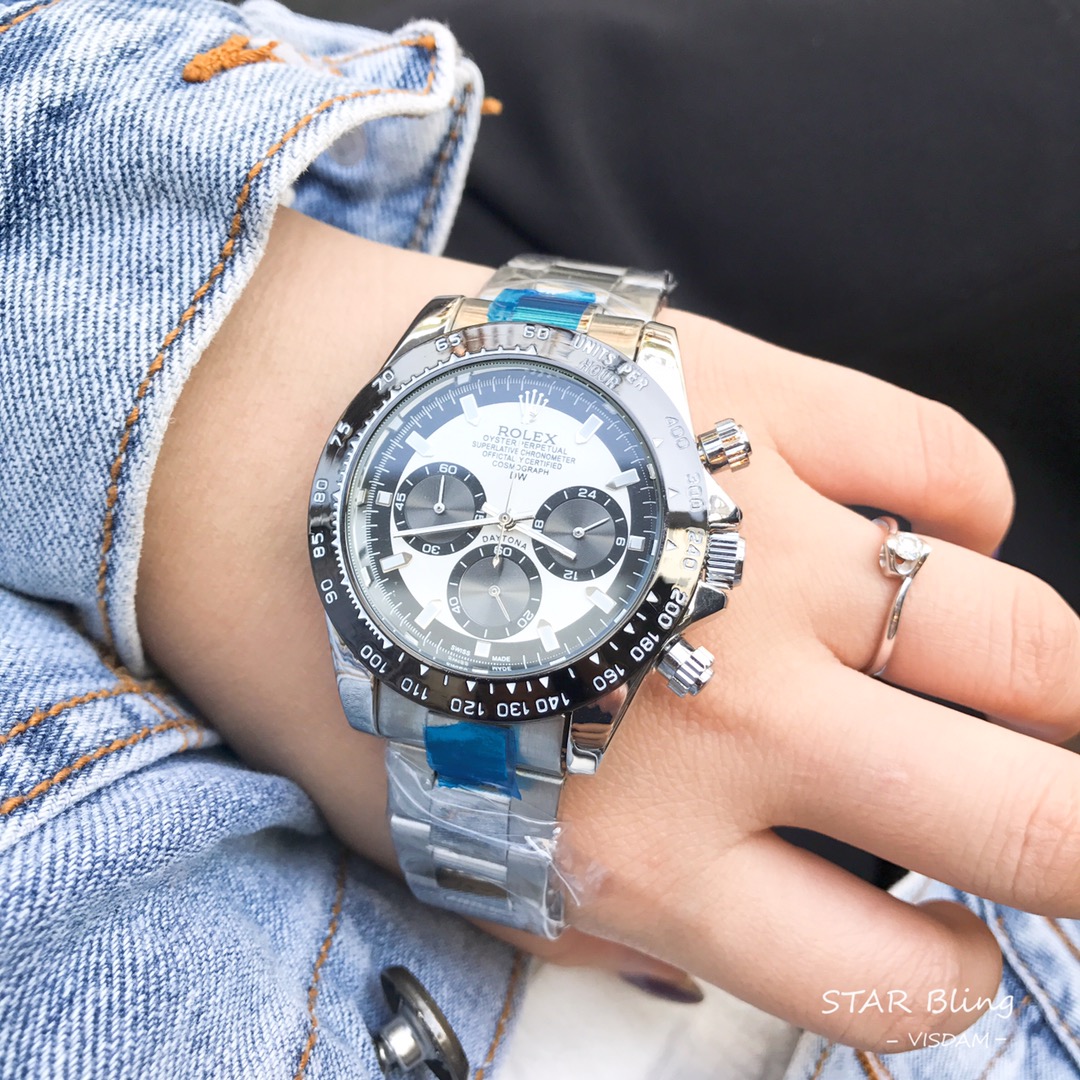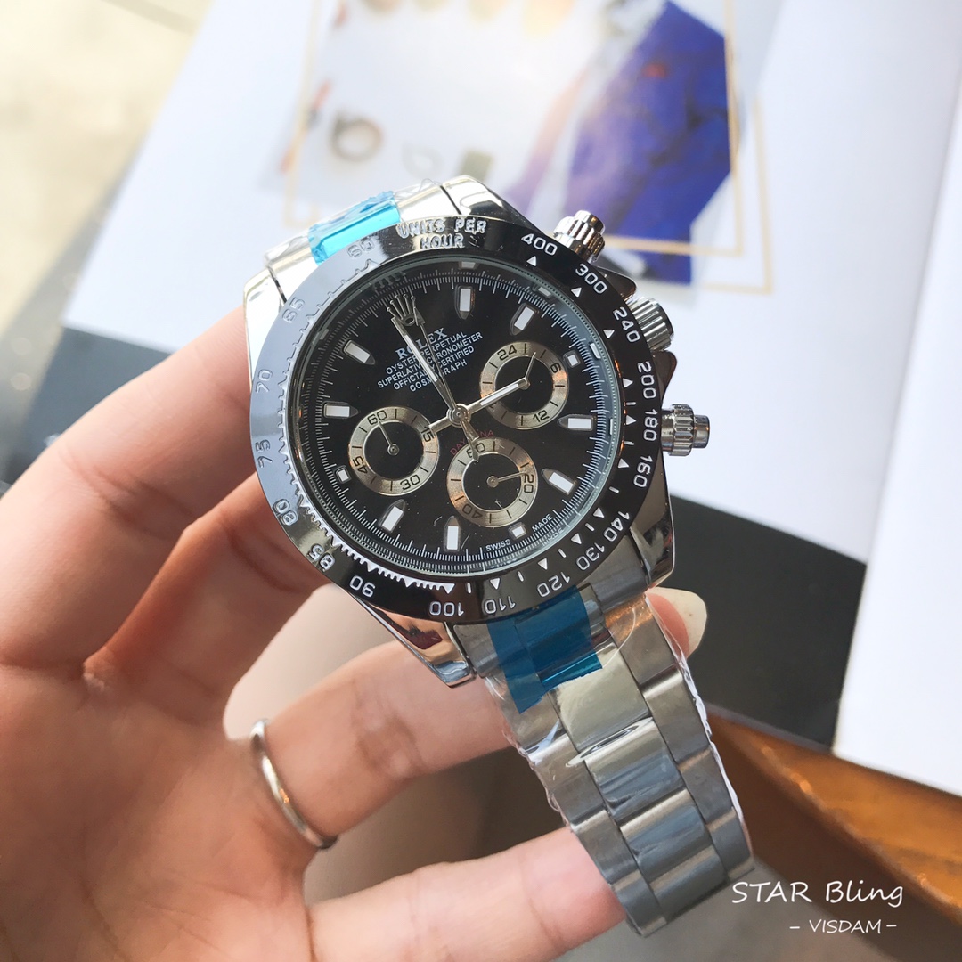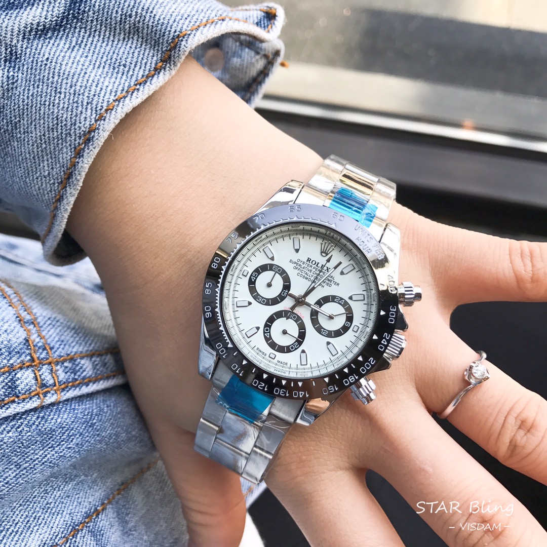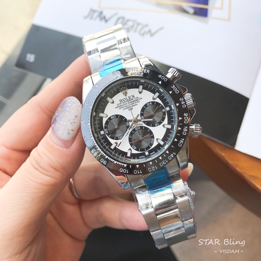 Experience the timeless elegance of the Rolex Daytona. Featuring a precise quartz movement and a durable stainless steel band.