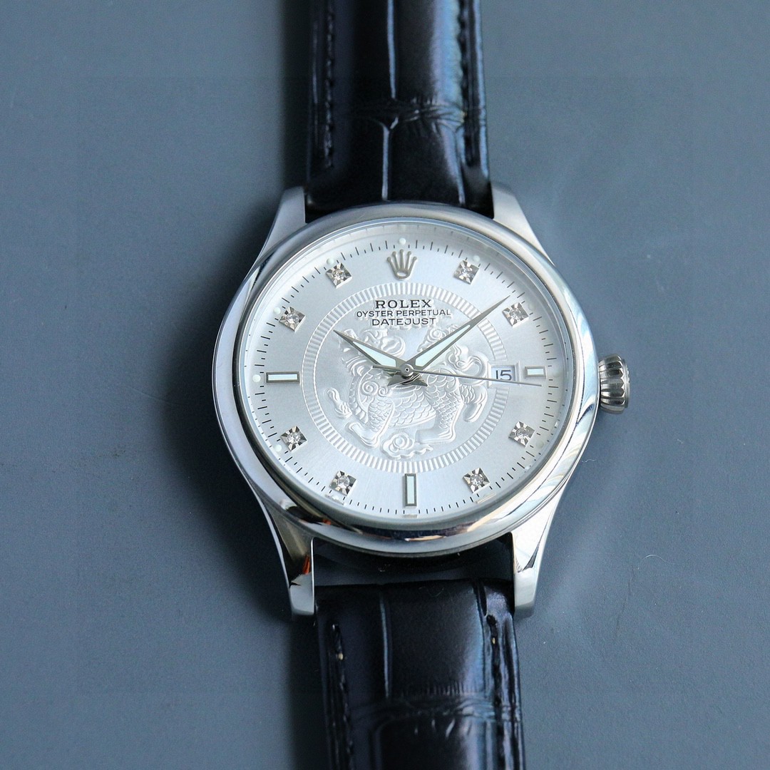 Elevate your style with this Rolex men's watch. Features a unique dial, sapphire glass, 316L stainless steel case, and a comfortable leather strap.
