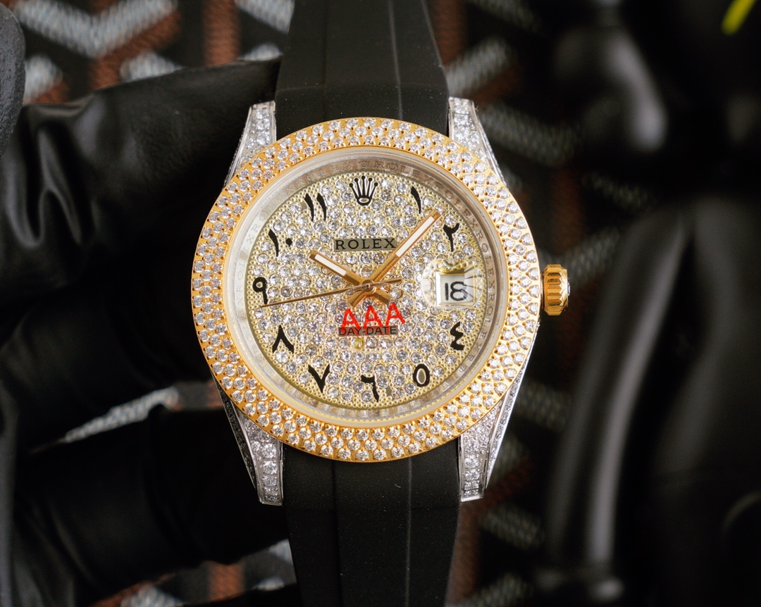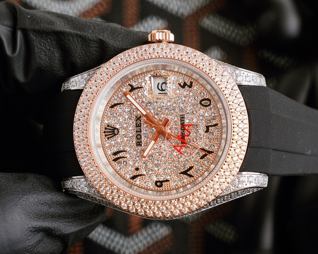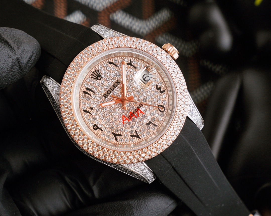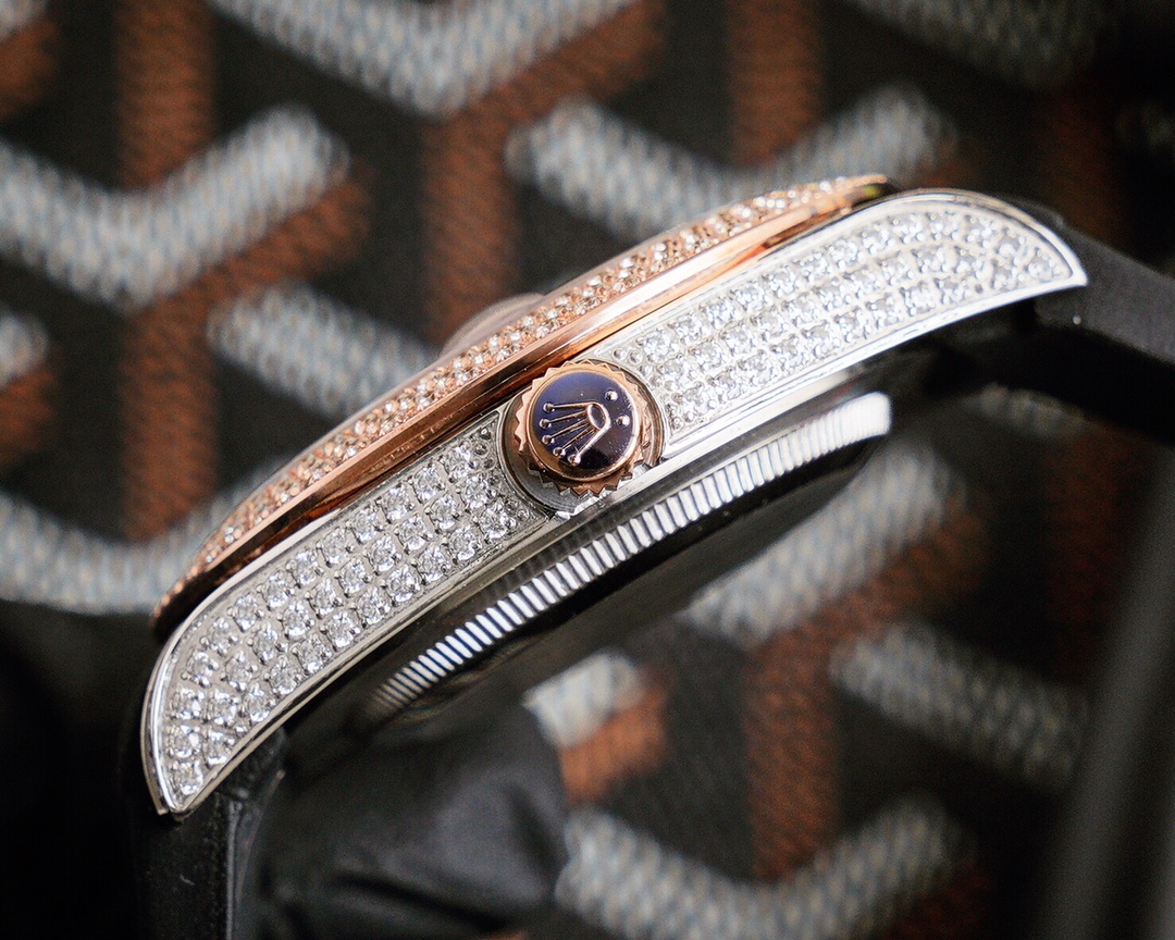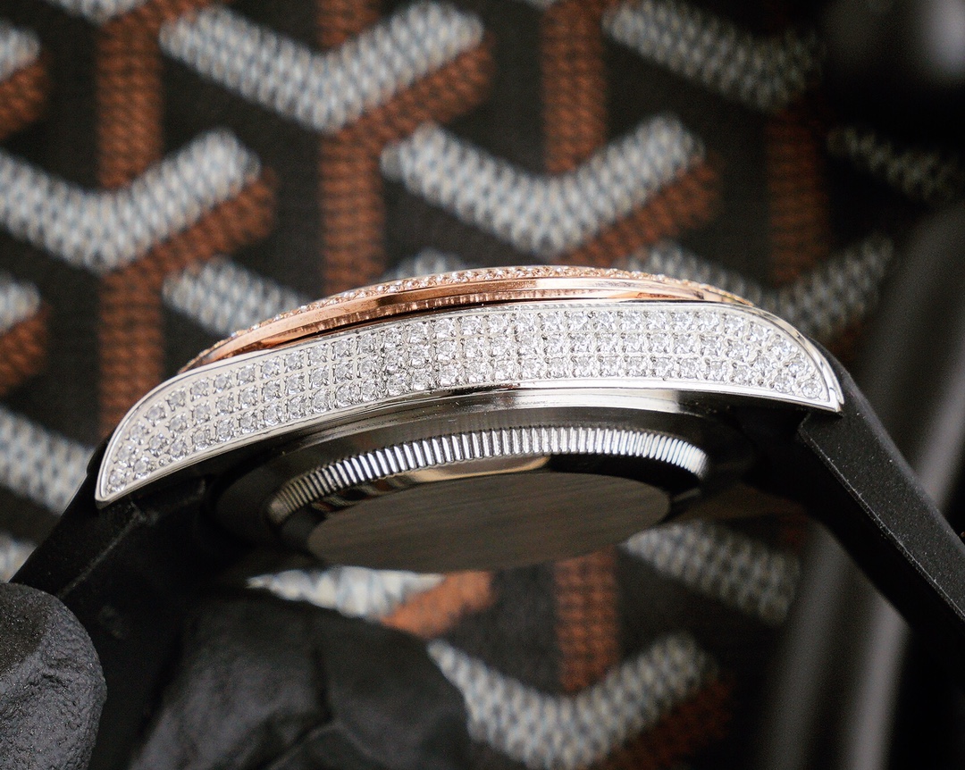 - Custom Diamond Setting: The bezel and dial are adorned with high-quality diamonds, adding unparalleled brilliance.