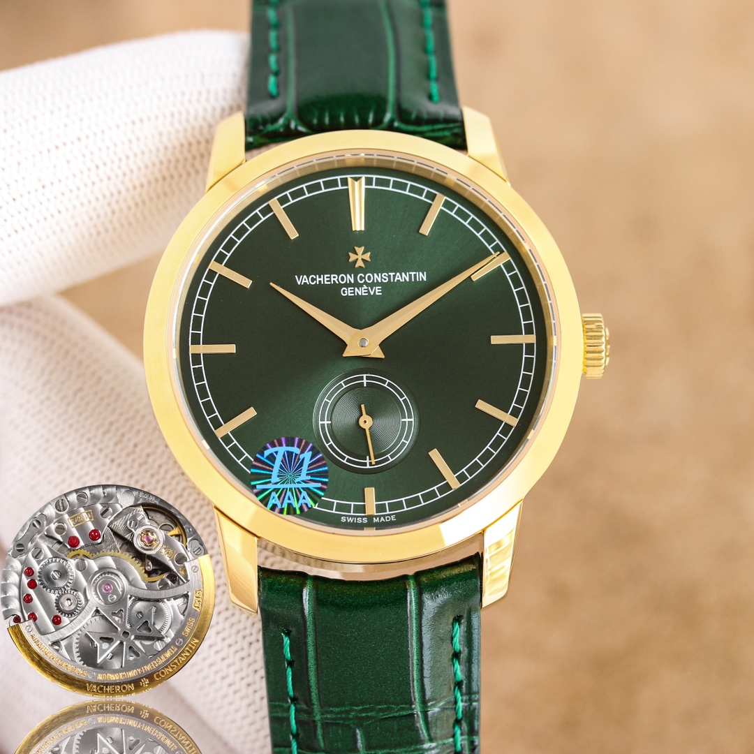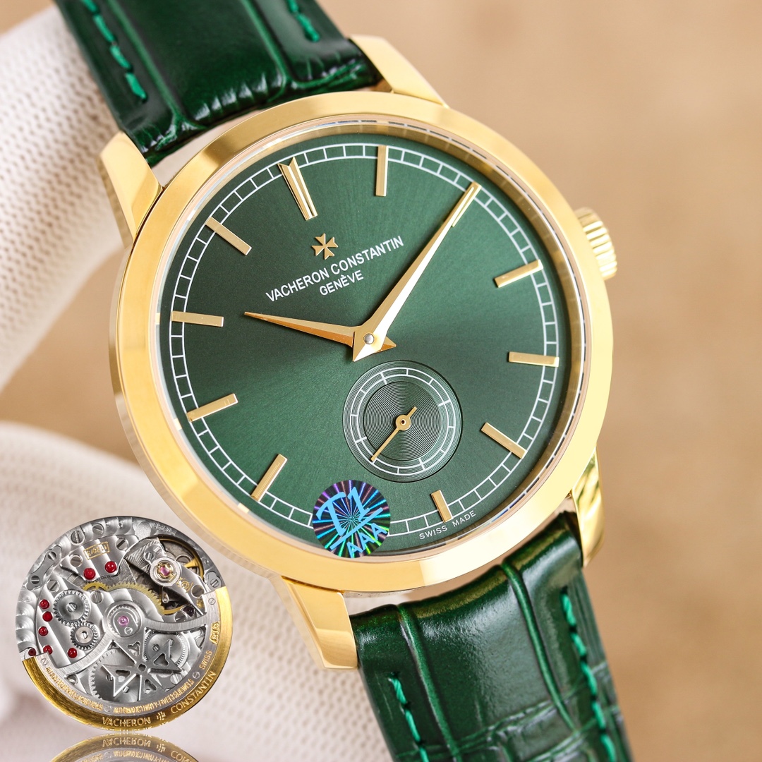 Vacheron Constantin Men's Watch, Green Dial, Gold Case, Leather Band - Elegant Timepiece