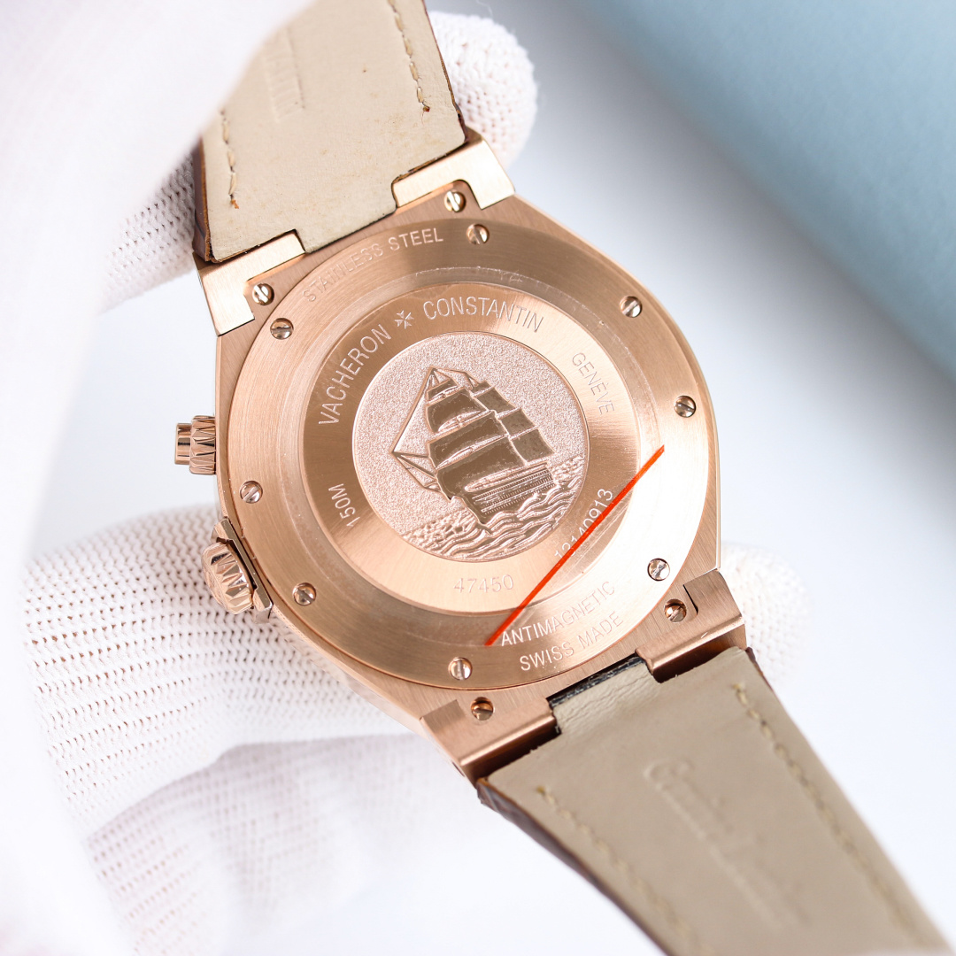 Experience luxury with this Vacheron Constantin Overseas watch. Featuring a rose gold finish, automatic movement, and precise detailing.