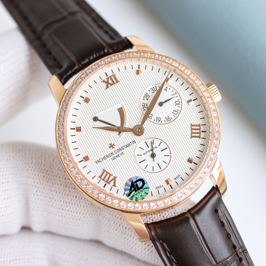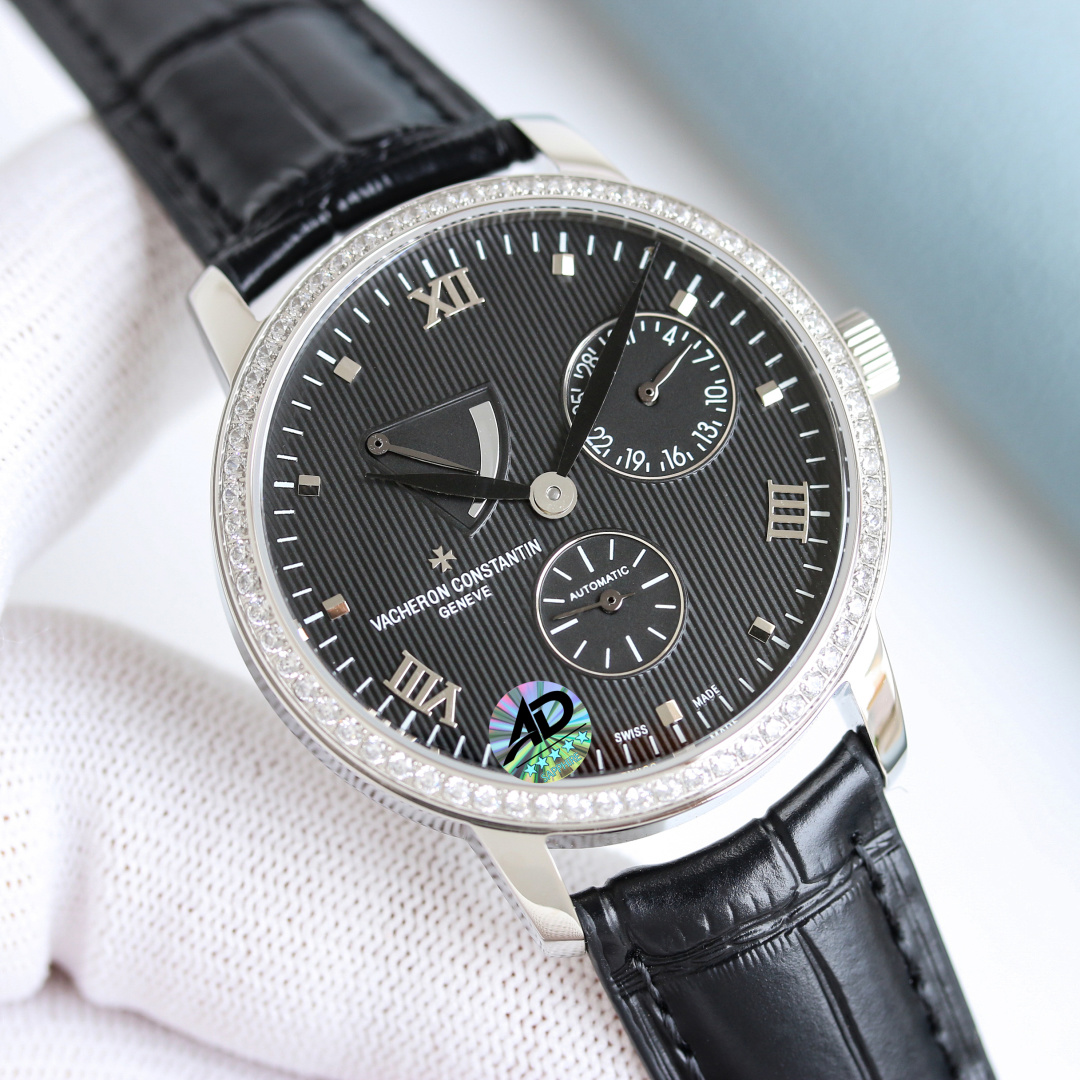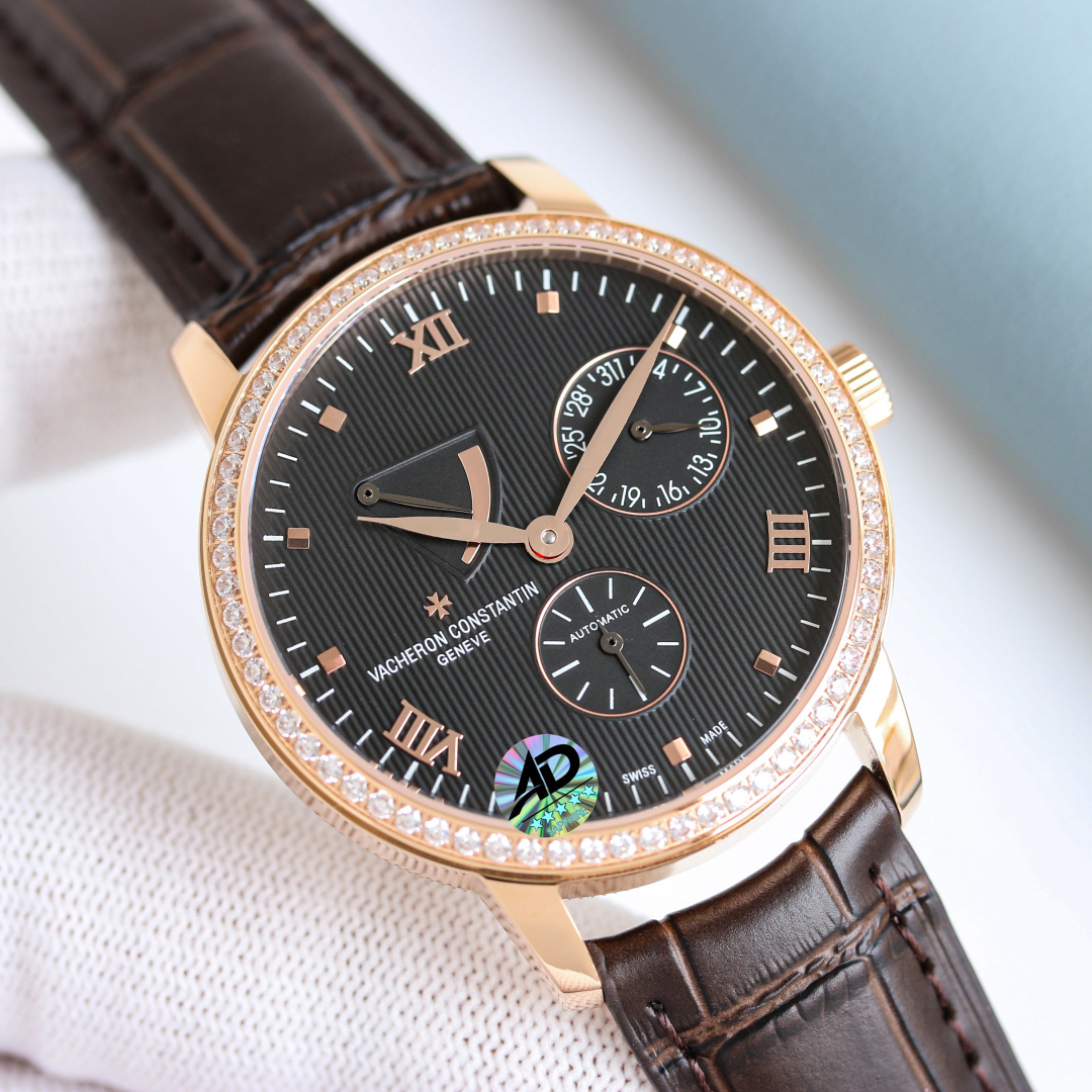 Experience sophistication. The Vacheron Constantin Traditionnelle features a diamond bezel, automatic movement, and multi-functional dial.A timeless classic.